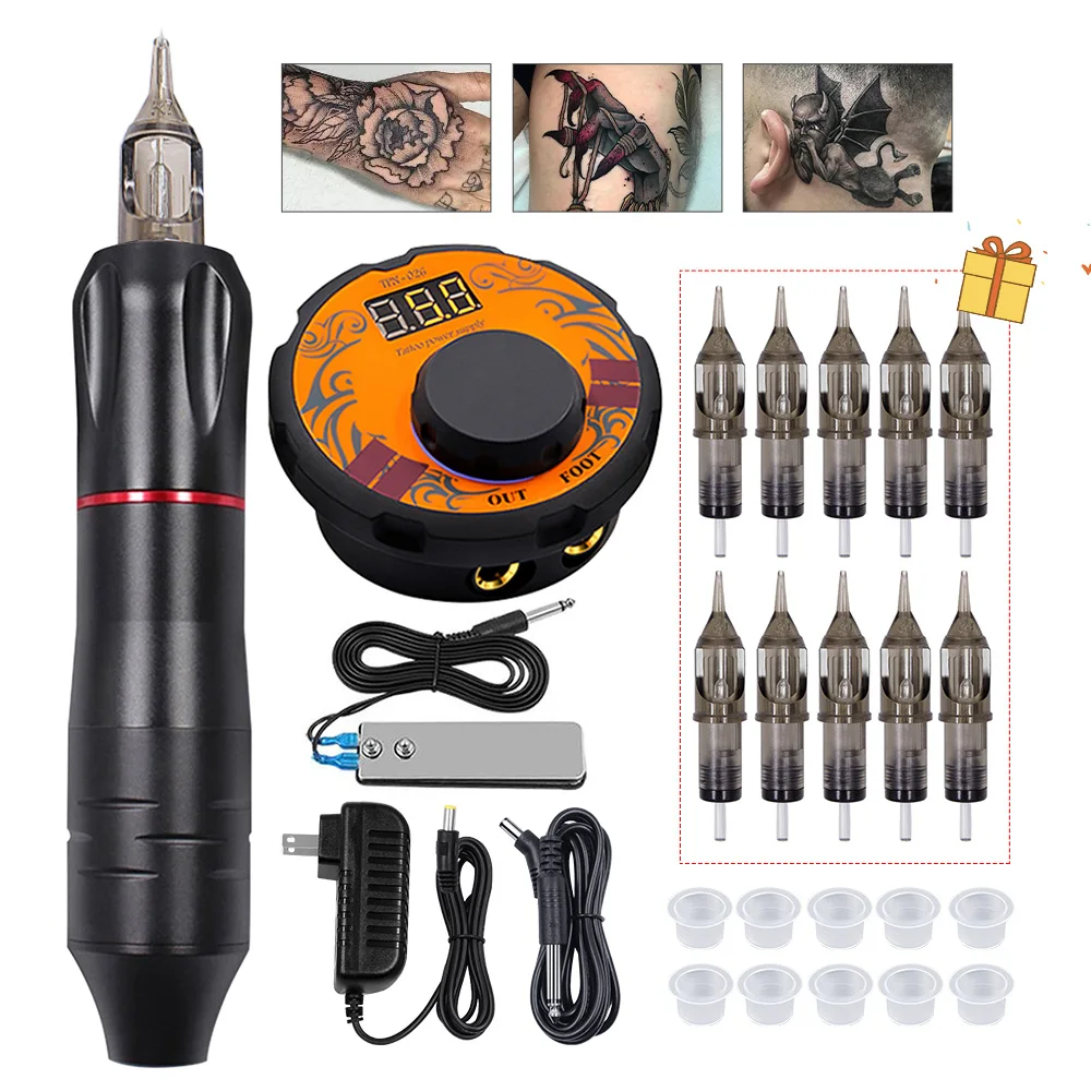 1 комплект:1 шт. ручной работы,1x Соединительный шнур,3x иглы картриджа1 Черная посылкаЧерный набор татуировки1 x тату,1 x Черная ручка для татуировки1 х педаль10 шт иглы татуировкиКрасный набор татуировки1x источник питания1x Красная ручка для татуировки1 педаль10 шт иглы татуировки