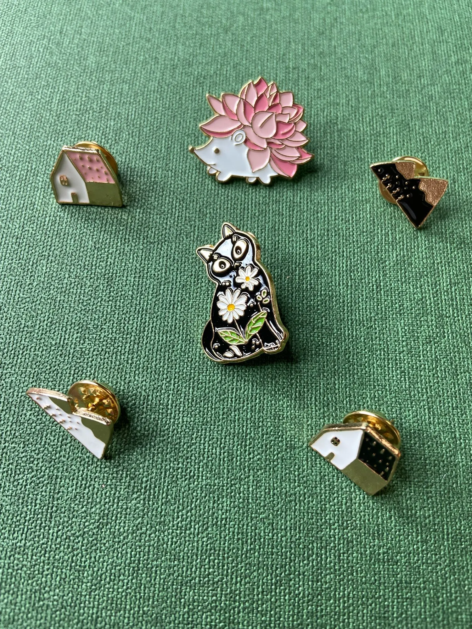 Булавка в виде хвойного леса, Маргаритка, Черный кот, суккулент, еж...