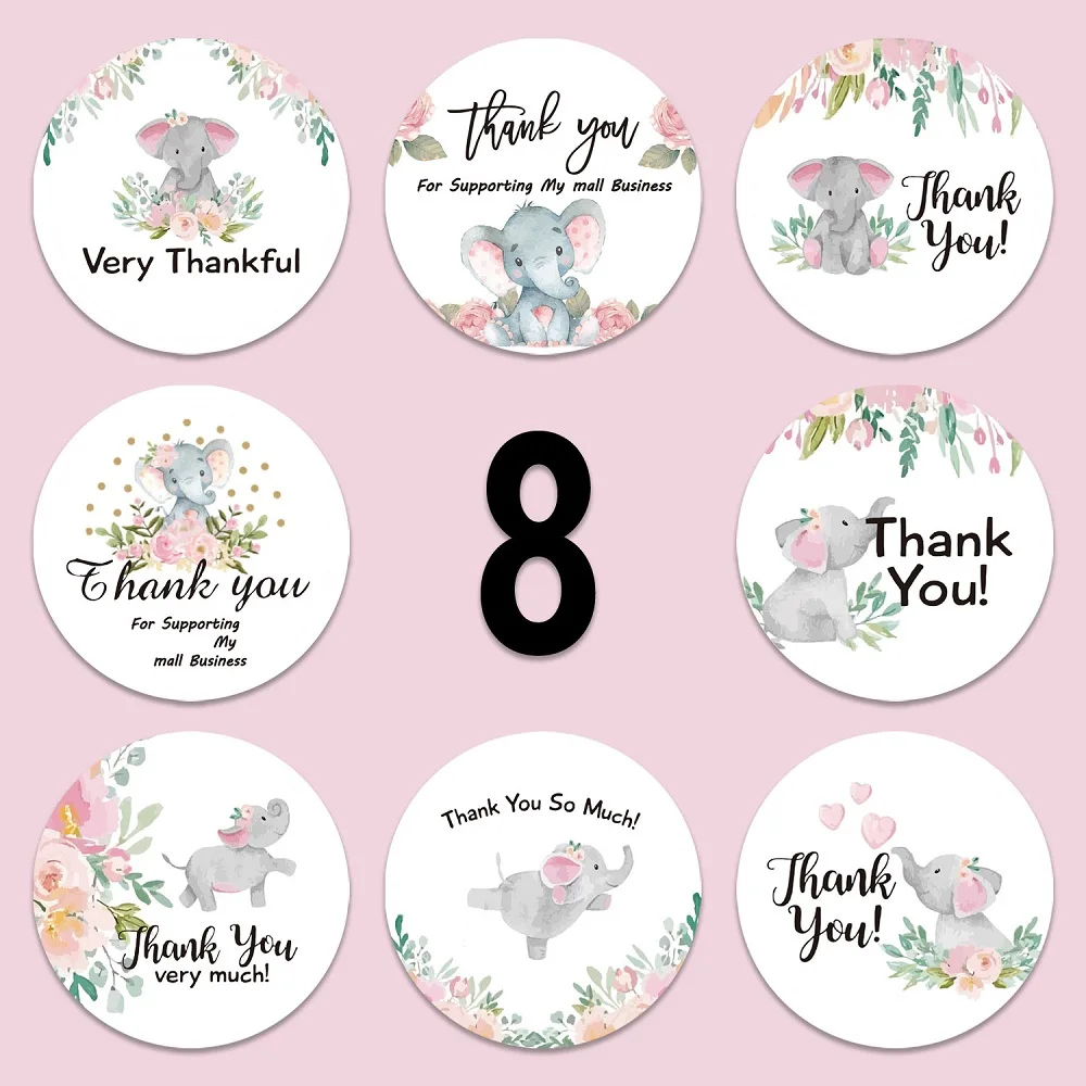 Потрясающие 8 видов стилей слон Животные наклейка спасибо 1 дюйм500...