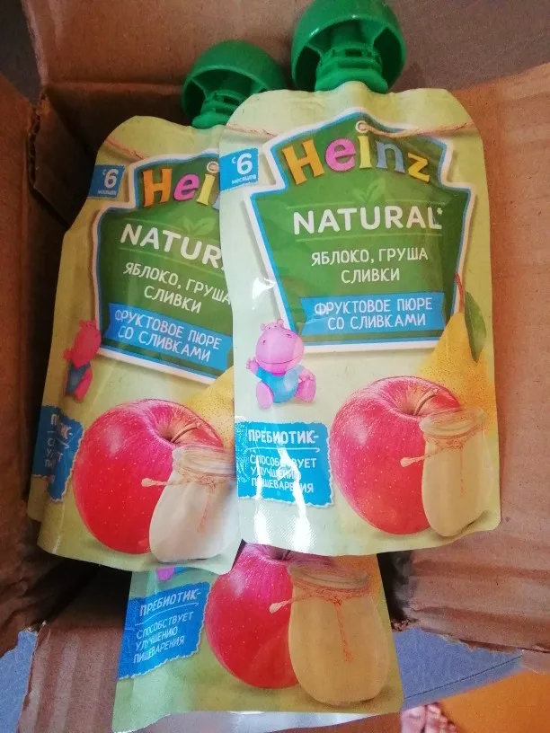 Пюре Heinz яблоко, груша, сливки (пауч), 6 мес., 90г