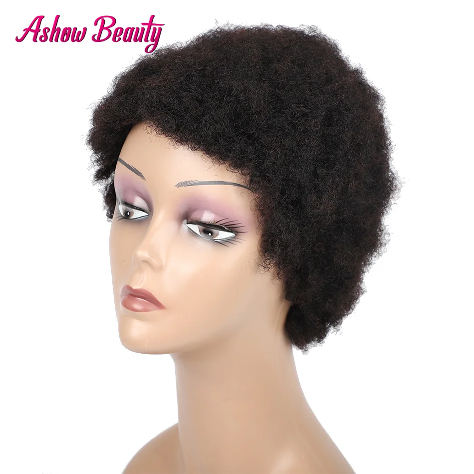 Афро кудрявые вьющиеся парики полная машина дешевые человеческие волосы парики для черных женщин Remy Бразильские короткие человеческие волосы парик