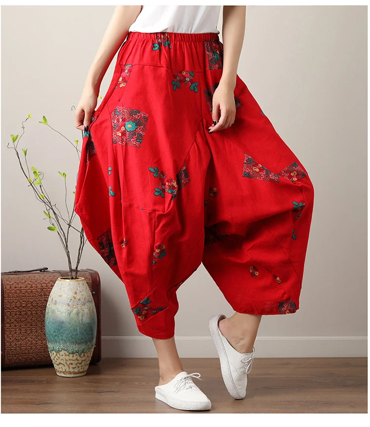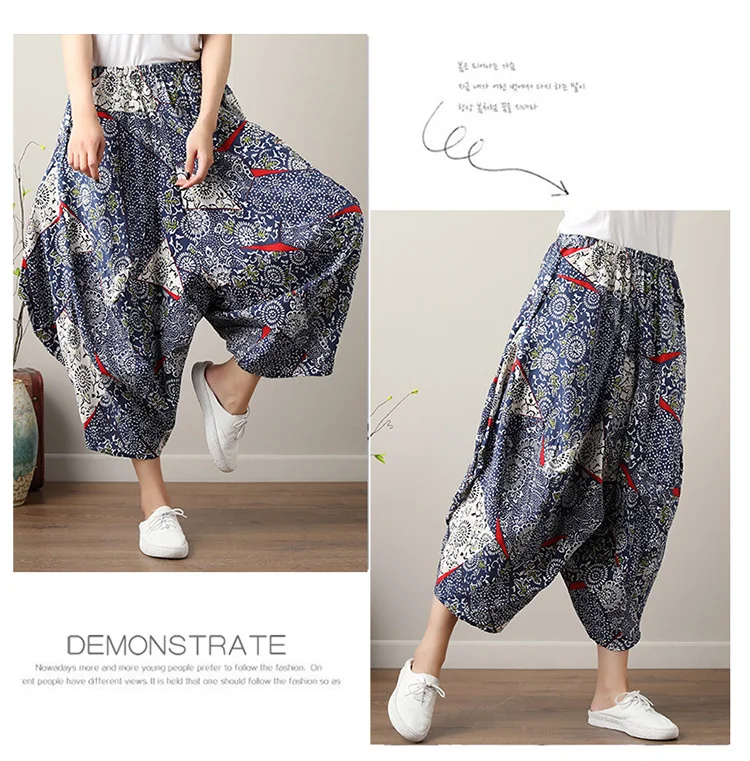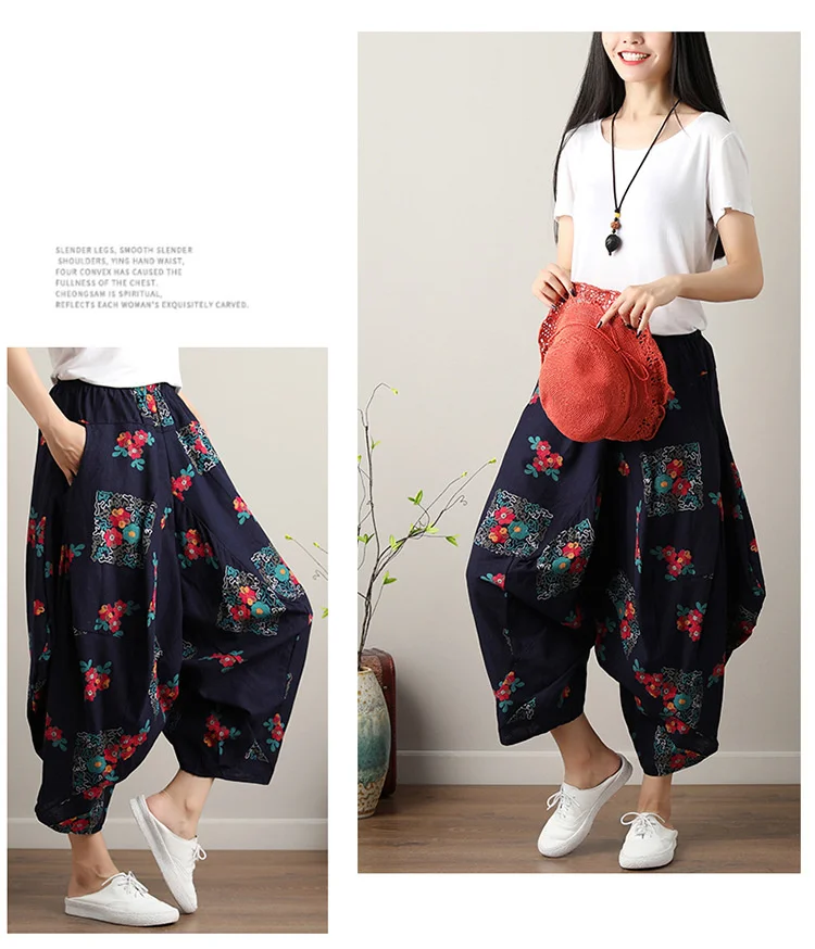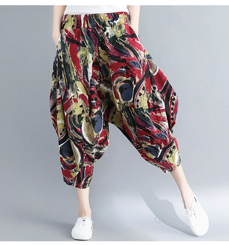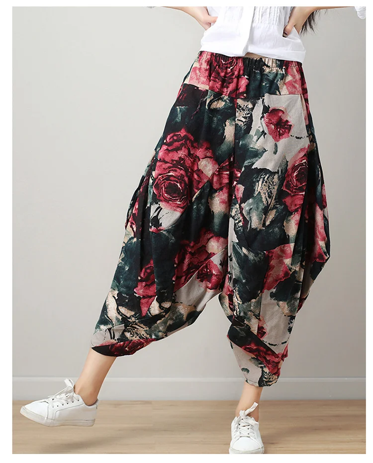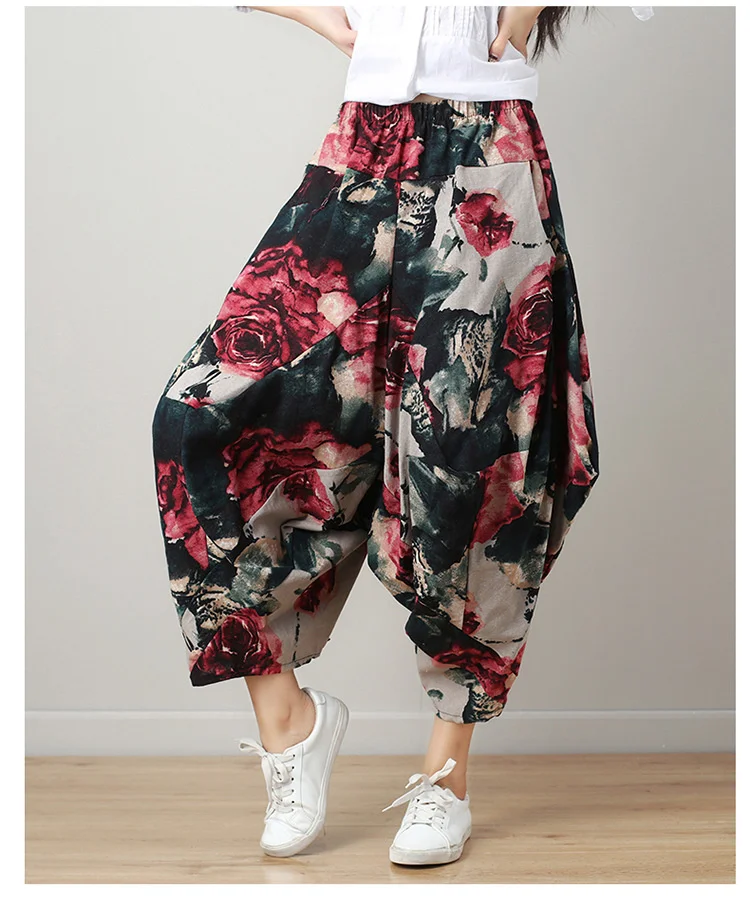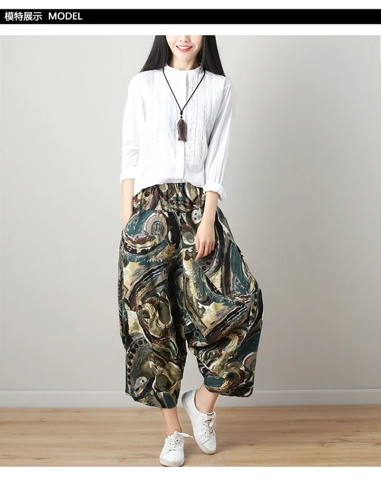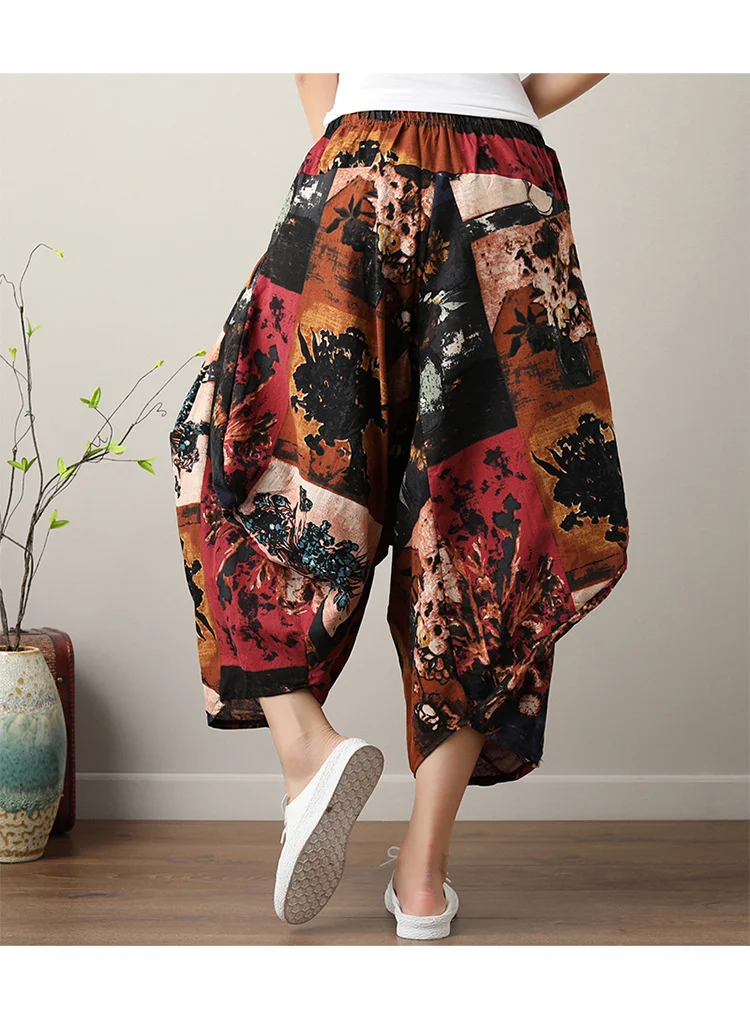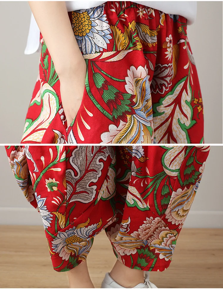 Хиппи одежда для женщин в богемном стиле с принтом штаны Летние каникулы брюки 70s женские зимние винтажные сапоги в этническом стиле, штаны с эластичной резинкой на талии для мальчиков повседневные Хлопковые Штаны