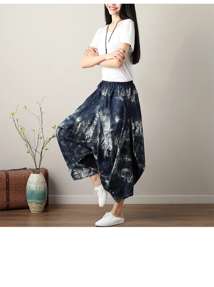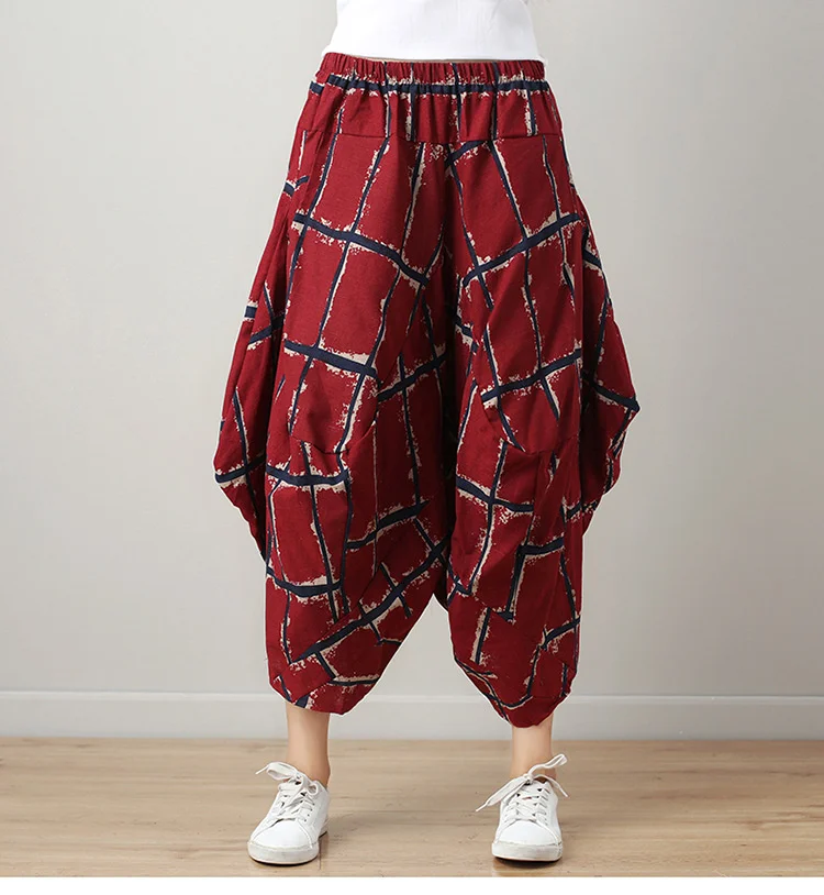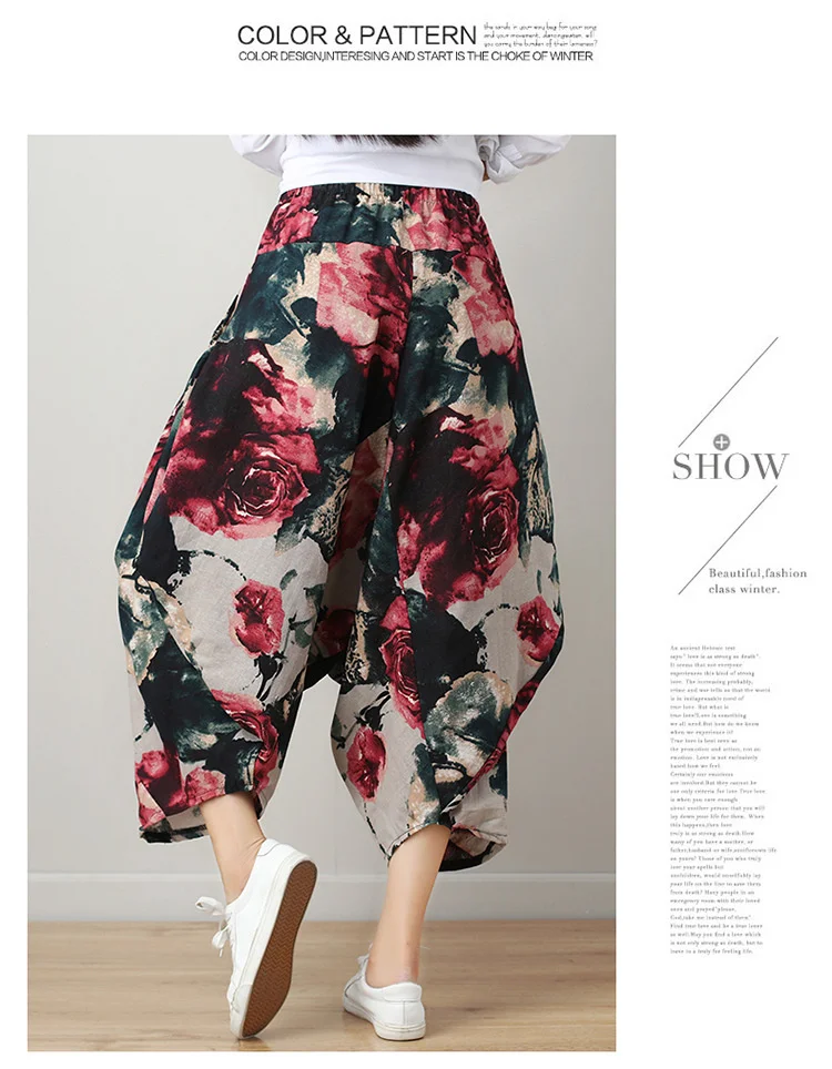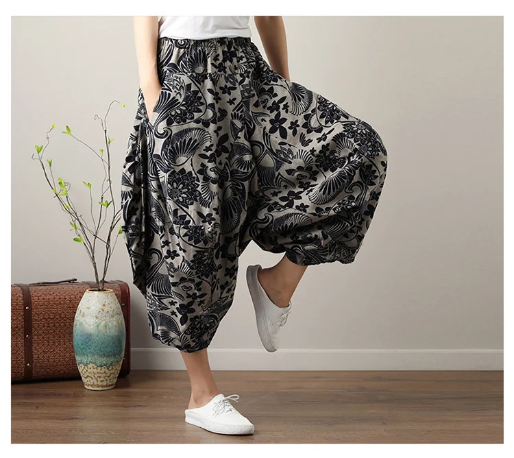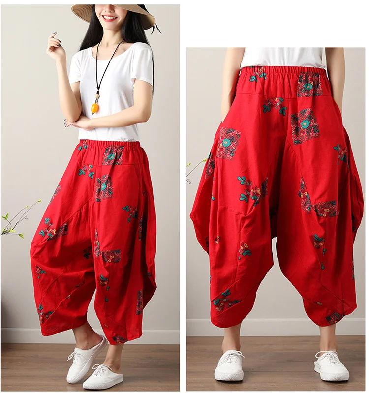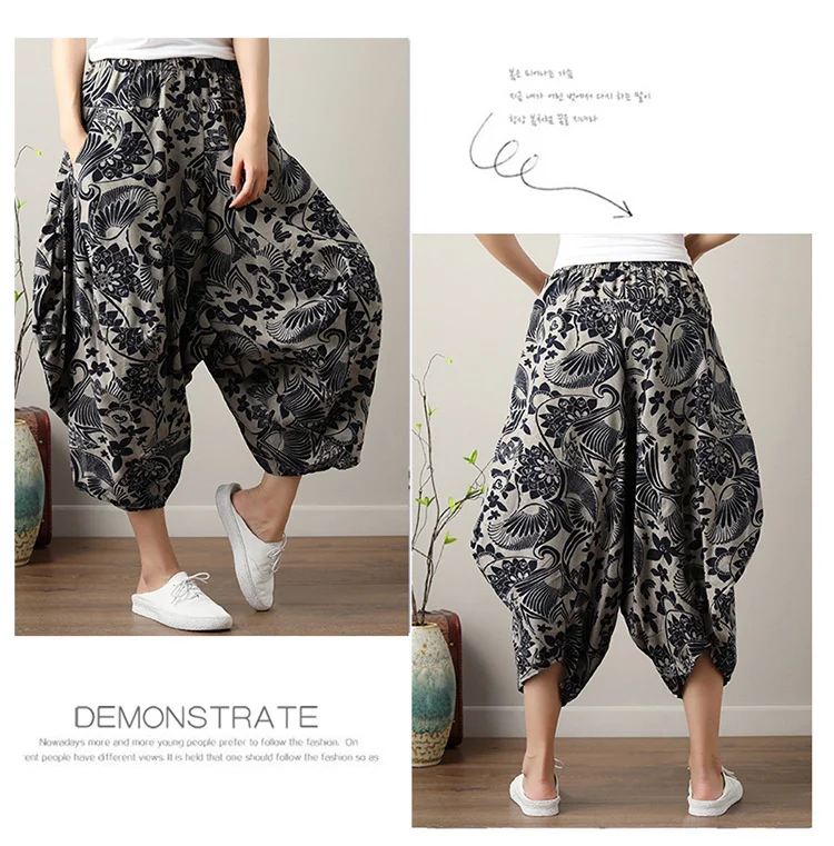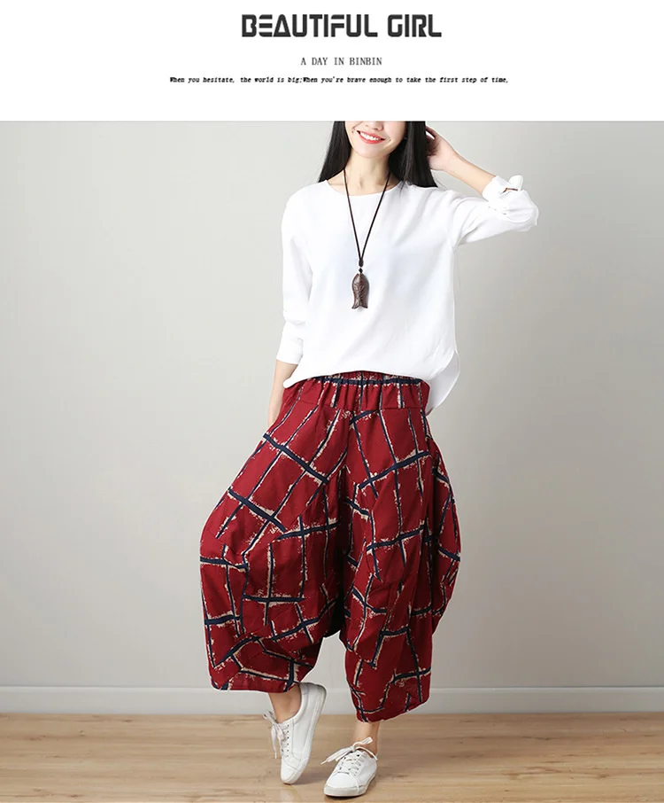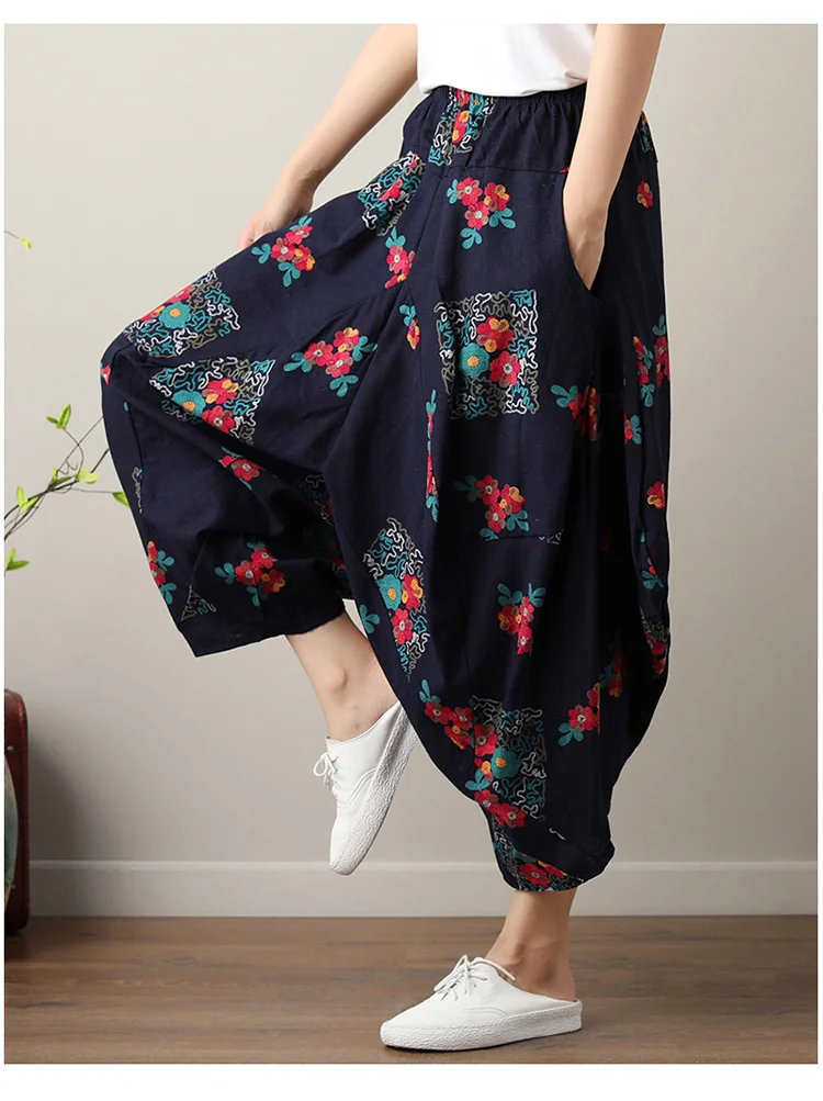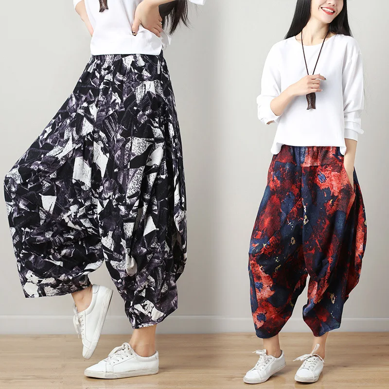 Хиппи одежда для женщин в богемном стиле с принтом штаны Летние каникулы брюки 70s женские зимние винтажные сапоги в этническом стиле, штаны с эластичной резинкой на талии для мальчиков повседневные Хлопковые Штаны