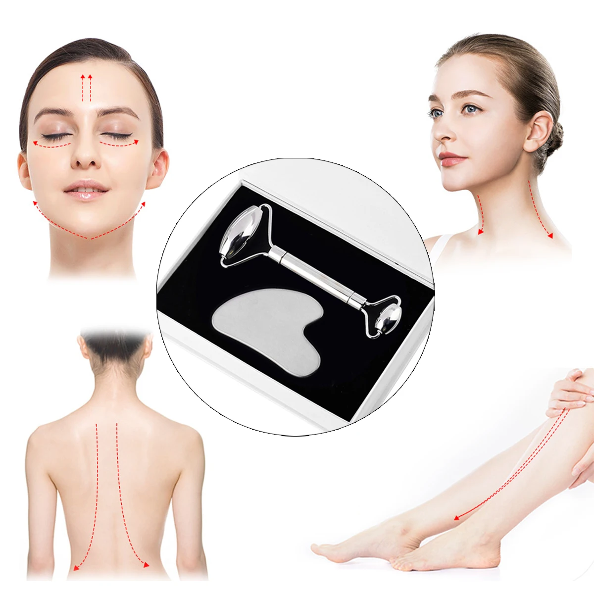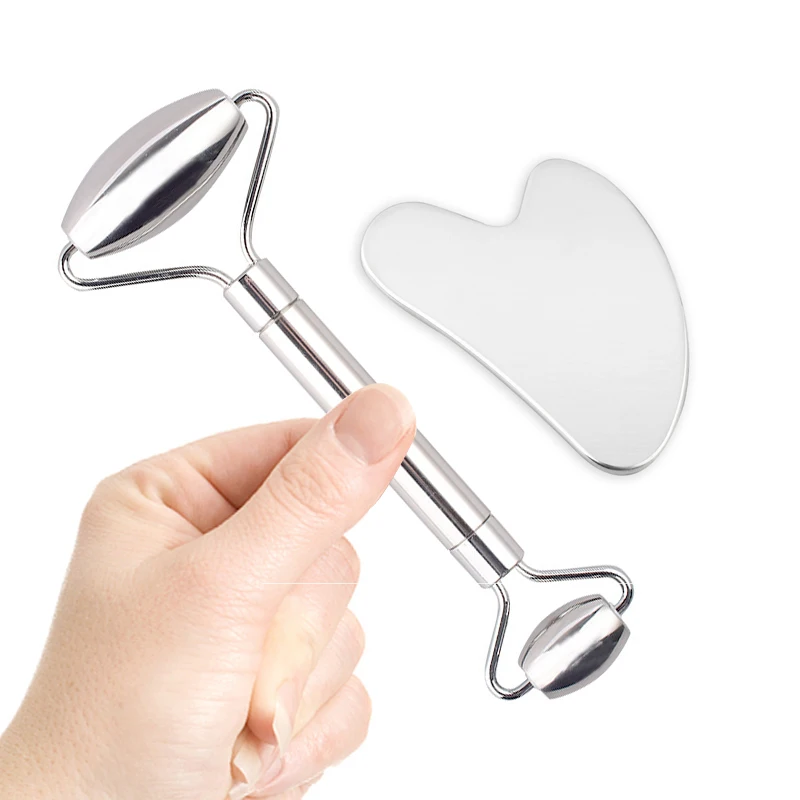 Скребок из нержавеющей стали ролик для массажа лица, массажер гуаша для лица, доска гуаша, инструменты для ухода за кожей для похудения