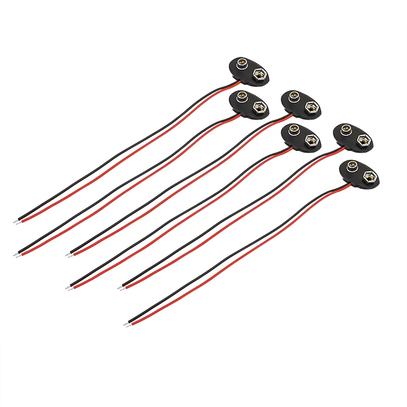 Описание товара 15 см/5,9 дюймов 9В батареи Соединительный зажим Подходит для подключения аккумулятора Подходит для аккумуляторов 9 вольт. Пластик и металл, которые делают батарейный зажим более прочным, корпус из искусственной кожи Т-образный зажим, который нелегко сломать Эти соединители с зажимом для аккумулятора разработаны просто с голыми концами, что удобно для установки для замены сломанного разъема батареи на вашем электронном устройстве без применения проводов. Применение: зажим батареи 9 вольт широко используется в студенческом эксперименте, обслуживании, производстве и т. д.