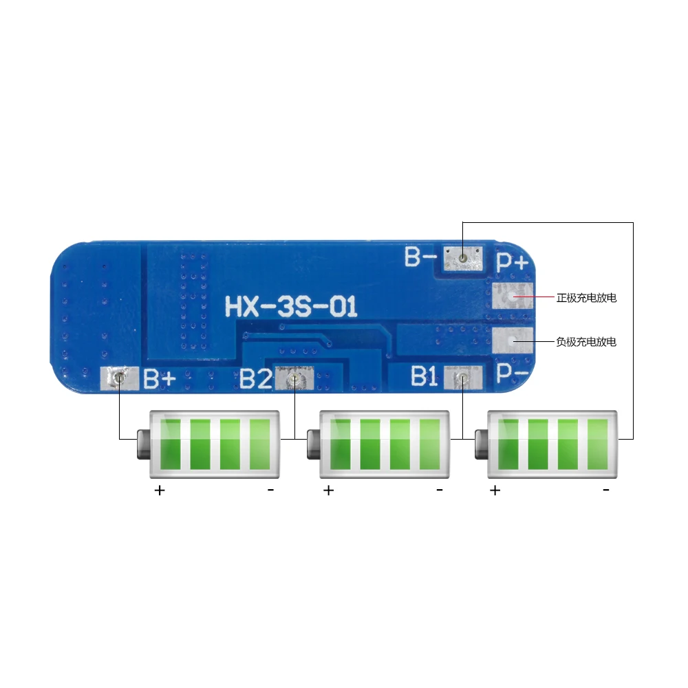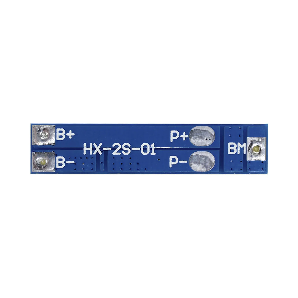 2S 3A 7,4 V/8,4 V Плата защиты литиевой батареи:Описание:Защита от короткого замыканияЗащита от перезарядаЗащита от перегрузкиЗащита от избыточной силы токаЗащита от перезаряда обнаружения напряжения: 4,25-4,35 V ± 0,05 VЗащита от избыточной разрядки обнаружения напряжения: 2,3-3,0 V ± 0,05 VМаксимальный рабочий ток: 3AПереходный ток: 5AРабочая температура: -40-50 градусовВнутреннее сопротивление: менее 45 МОмB + B-: Интерфейс батареиP + P-: разъем платы аккумулятораМб: точка подключения между батареямиB +: аккумулятор V + ПоложительныйB-: аккумулятор V-отрицательныйP +: выход/зарядка V +P-: выход/зарядка V-Размер: около 36x6x1 мм/1,42 "× 0,24" × 0,04"