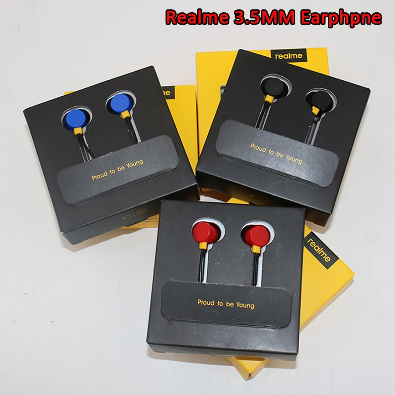Особенности товара: -- Realme Новый посылка 3,5 мм наушники-вкладыши гарнитура -С проводным управлением Micphone -- Доступны 3 цвета -Структура ношения в ушах: индивидуальный комфорт для уха -Подходит для Realme смартфоны с 3,5 мм Jack