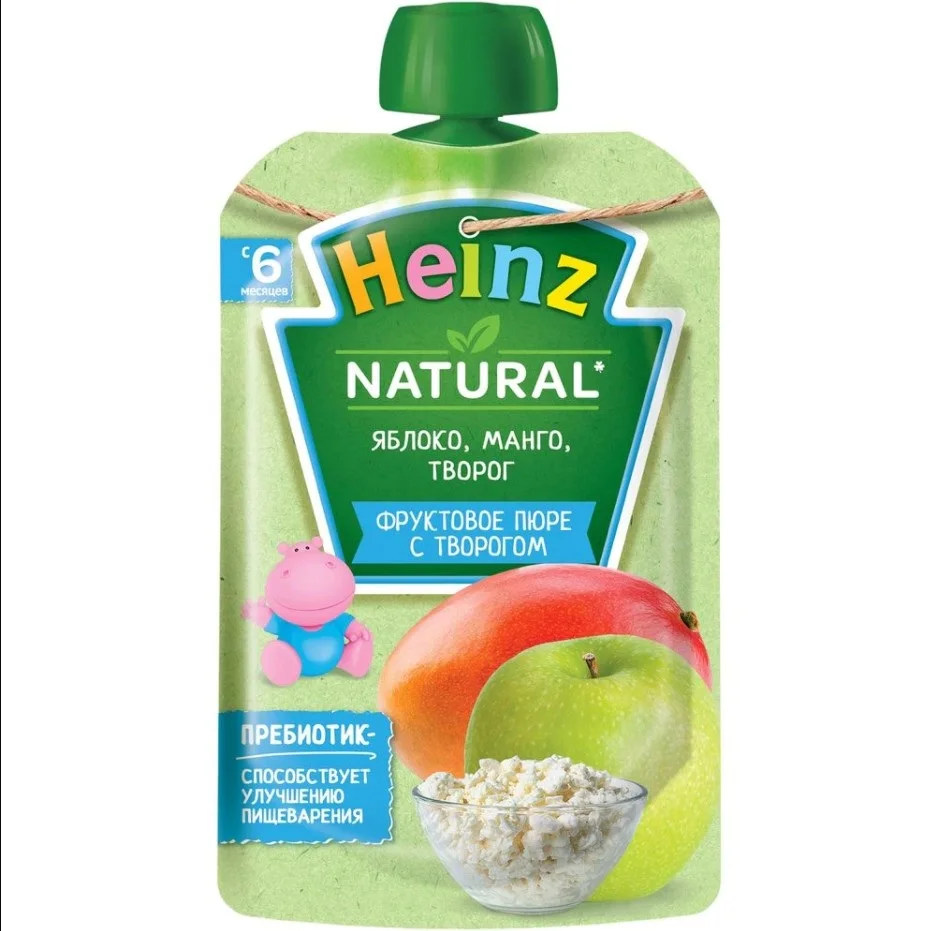 Пюре Heinz яблоко, манго, творог (пауч), 6 мес., 90г