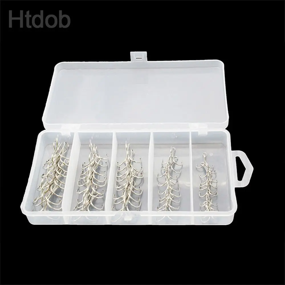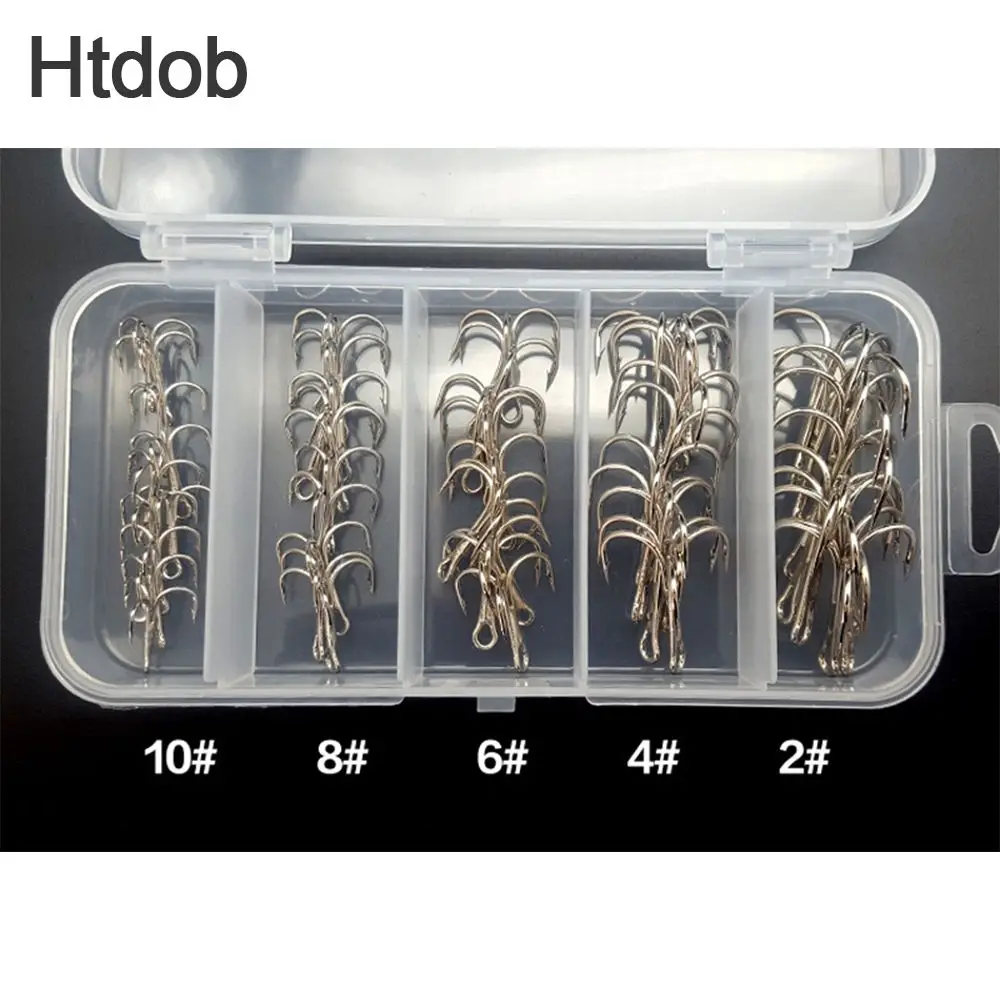50 шт.кор. тройной рыболовный крючок в ящик для хранения заточенные тройной крючок Размеры 246810 # колючей крючок серебро Цвет для подледного лова