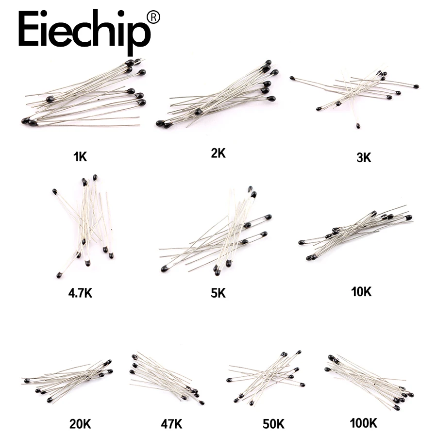 Комплект терморезисторов NTC 100 шт.лот, 10 значений, стандартные резисторы, комплект 1K 2K 3K 4,7 K 5K 10K 20K 47K 50K 100K 5% 3950B