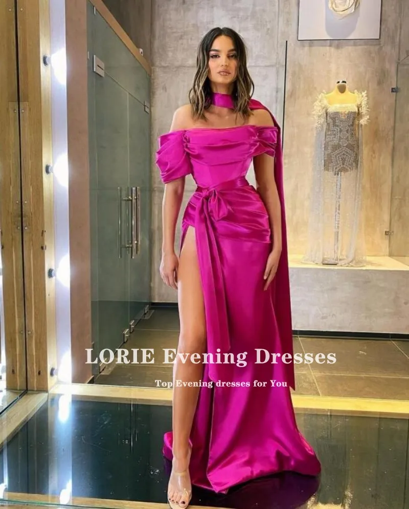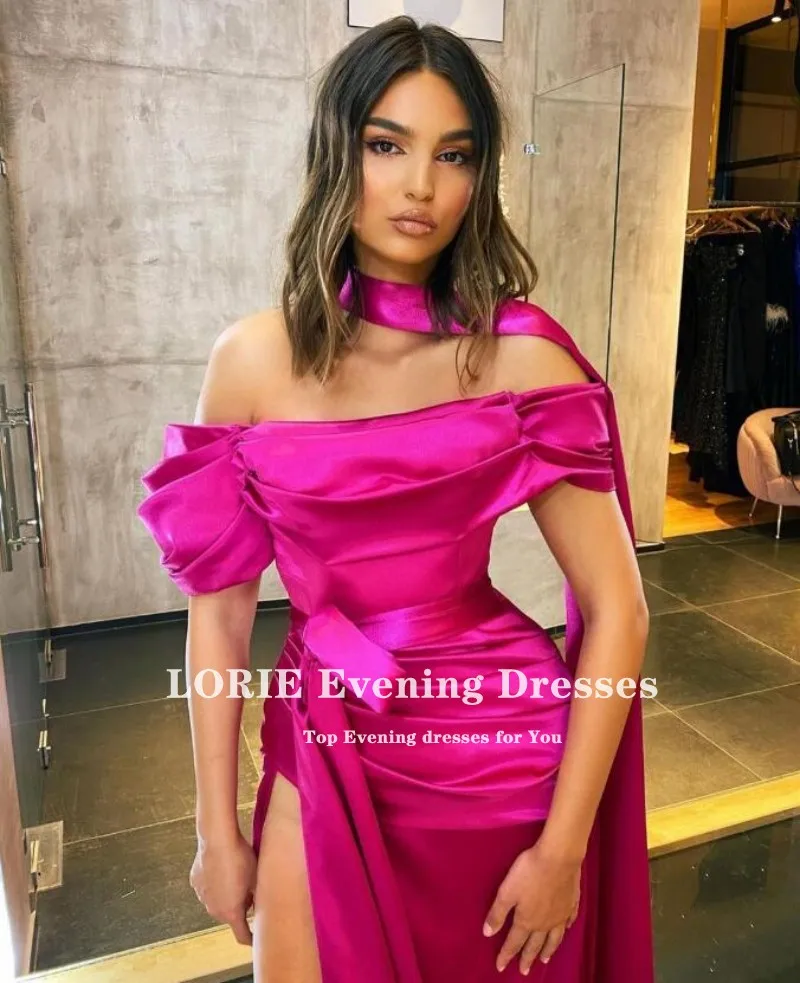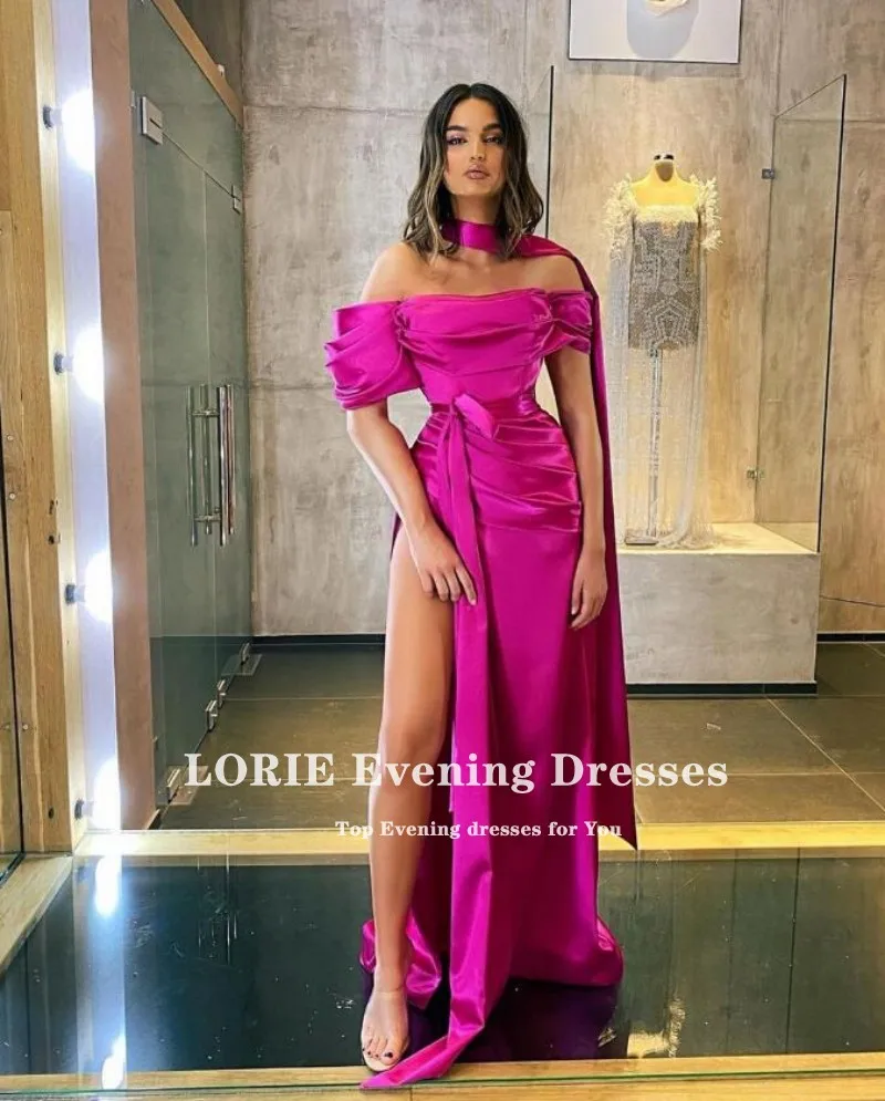 Вечерние платья LORIE Dubai Простые без бретелек с коротким рукавом Fushcia с Боковым Разрезом атласное платье Русалка для выпускного вечера abiti da cerimonia