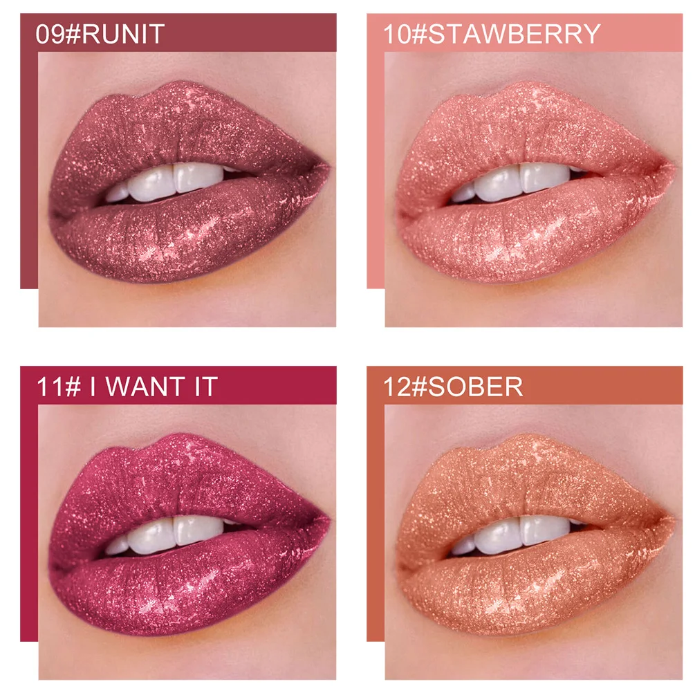 Лидер продаж, 12 цветов, жидкая помада с блестками для макияжа губ, водостойкая стойкая Мерцающая Красная губная помада, розовая Женская красивая помада
