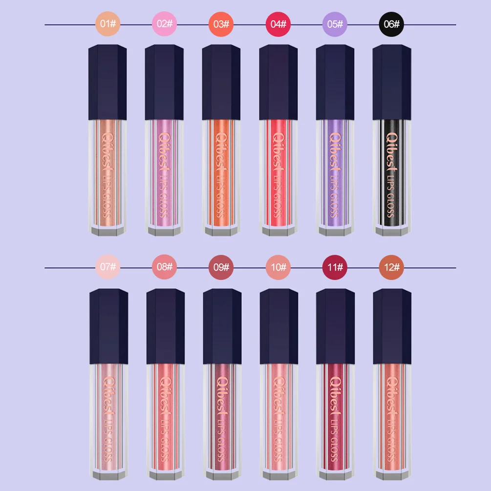 Блестящая жидкая губная помада QIBEST, блеск для губ 12 цветов, кос...