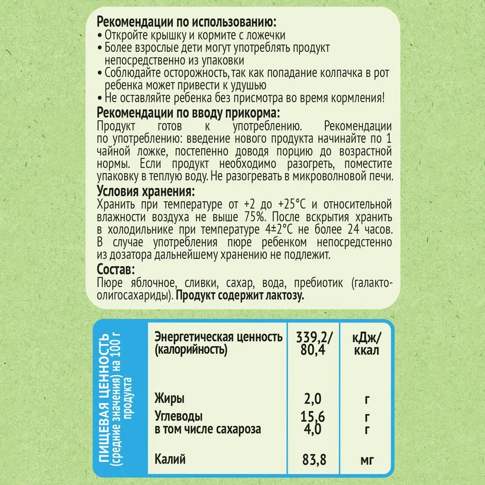 • 100% натуральные фрукты.• Пребиотик для комфортного пищеварения.• Без крахмала, консервантов, красителей, ароматизаторов и ГМО.• Удобная мягкая упаковка.