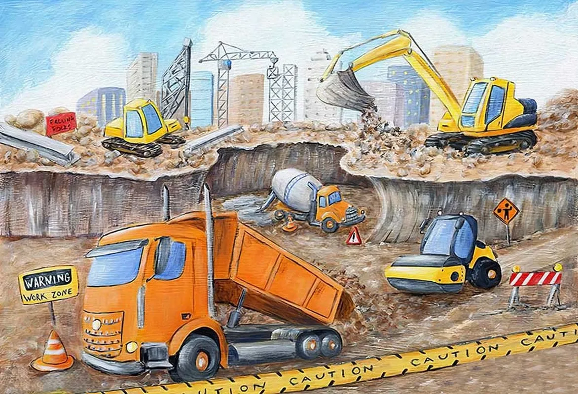 Фотофон вечеринка для мальчика день рождение для фотостудии с изображением грузовика экскаватора строительной зоны