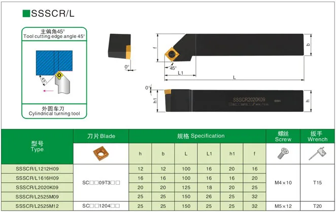Держатель внешнего токарного инструмента SSSCR2020K09, SSSCL2020K09...