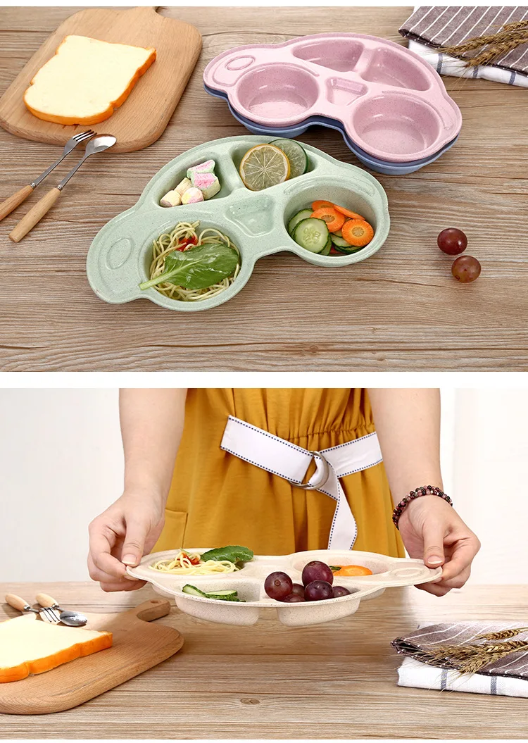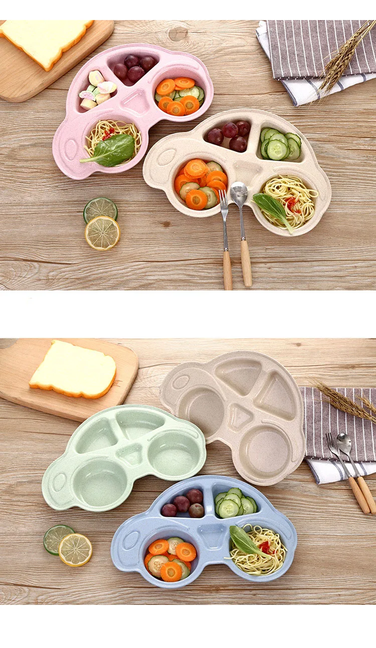 Разделенная тарелка из пшеничной соломы, детская посуда в форме маш...