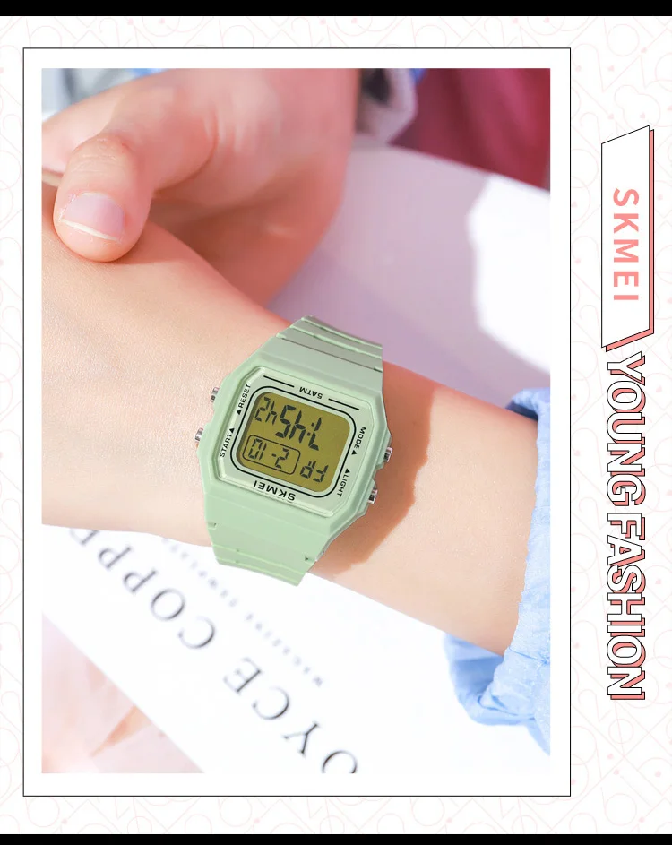 Часы наручные SKMEI женские с цифровым механизмом, спортивные светодиодсветильник водонепроницаемые с секундомером, 5 бар, 1683