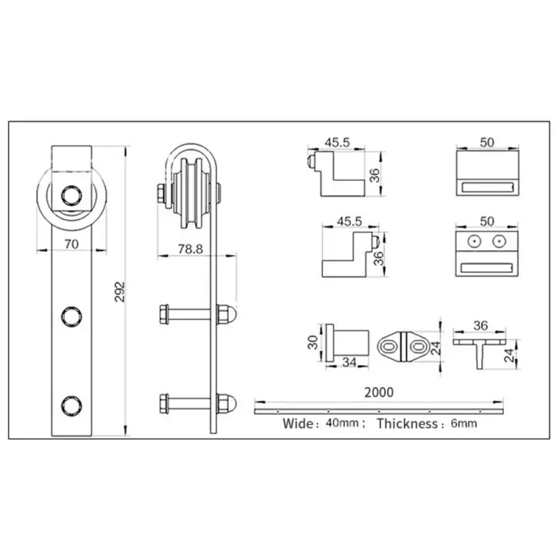 2 м раздвижные двери сарая комплект трек Ролик оборудования плавное бесшумное амбаров Комплект направляющих для шкафу нержавеющая сталь кухонный Кабинет двери сарая подвесной рельс для HWC