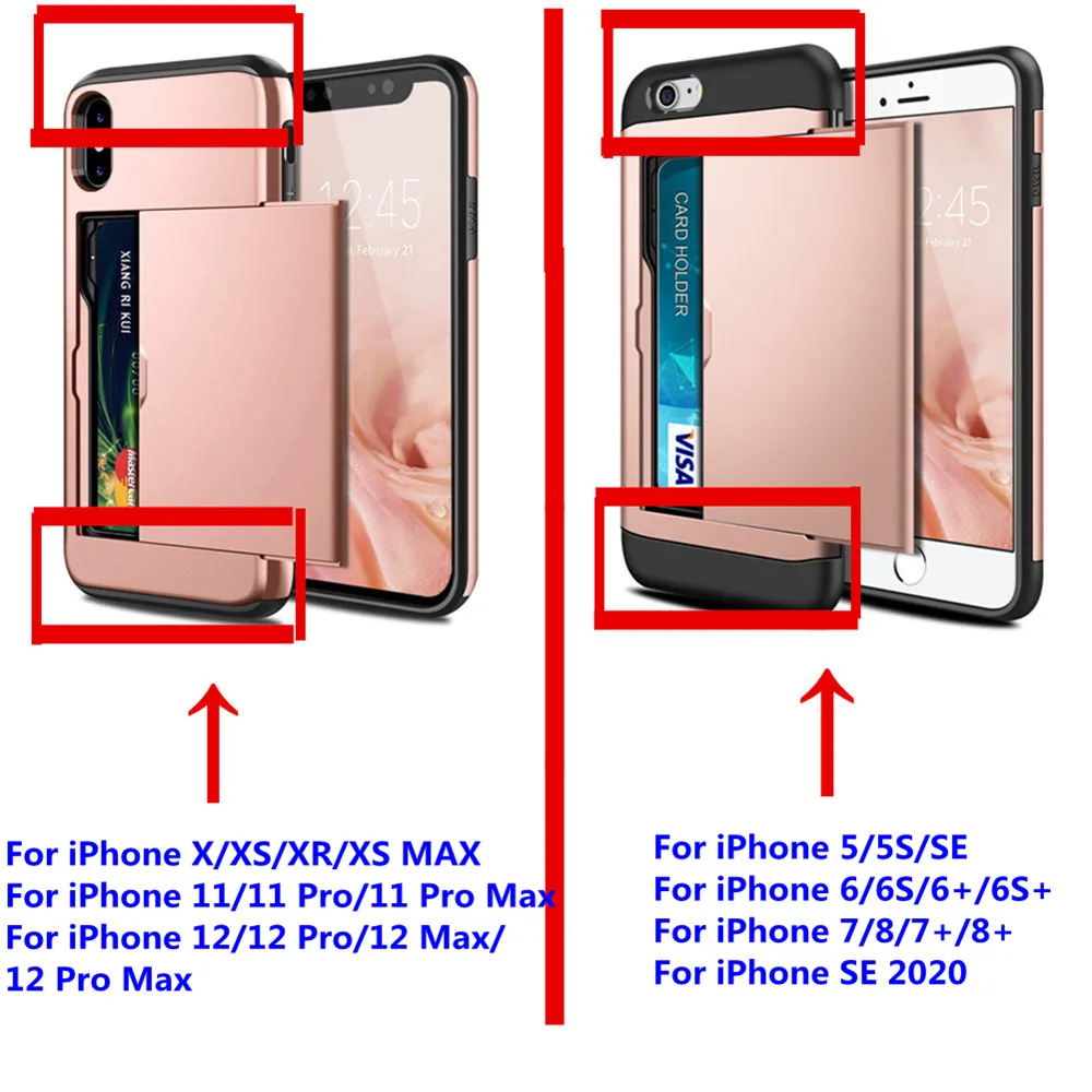 Гибридный жесткий защитный чехол-кошелек для iPhone 12 Mini 11 Pro XS Max XR X 6 6S 7 8 Plus 5 S SE 2020