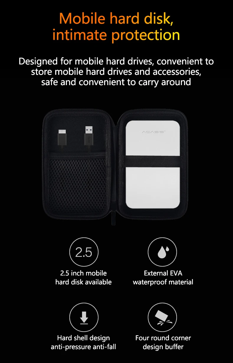Acasis, 2,5 дюймов, чехол для жесткого диска, сумка для внешнего жесткого диска, чехол для внешнего жесткого диска