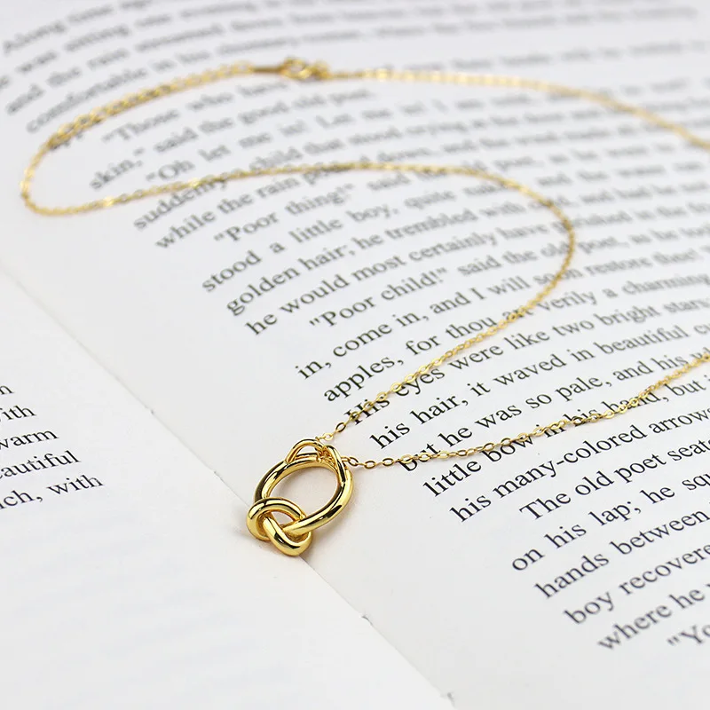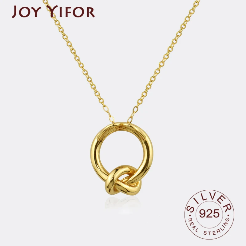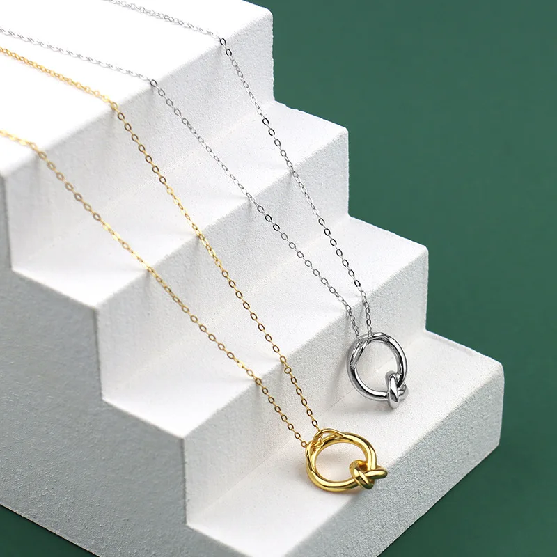925 стерлингового серебра для женщин, модная новинка, ювелирное изделие, высокое качество круг узлов золото ретро простое ожерелье с подвеской Длина 48 см