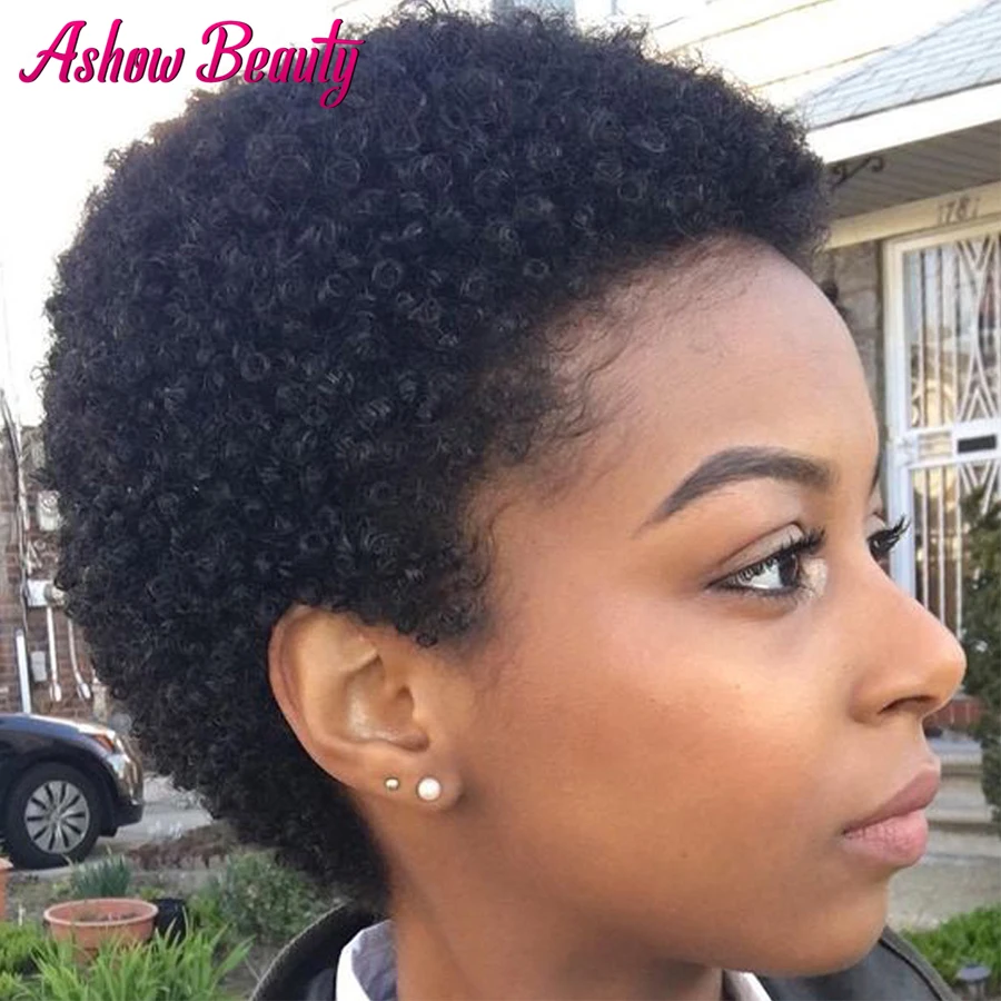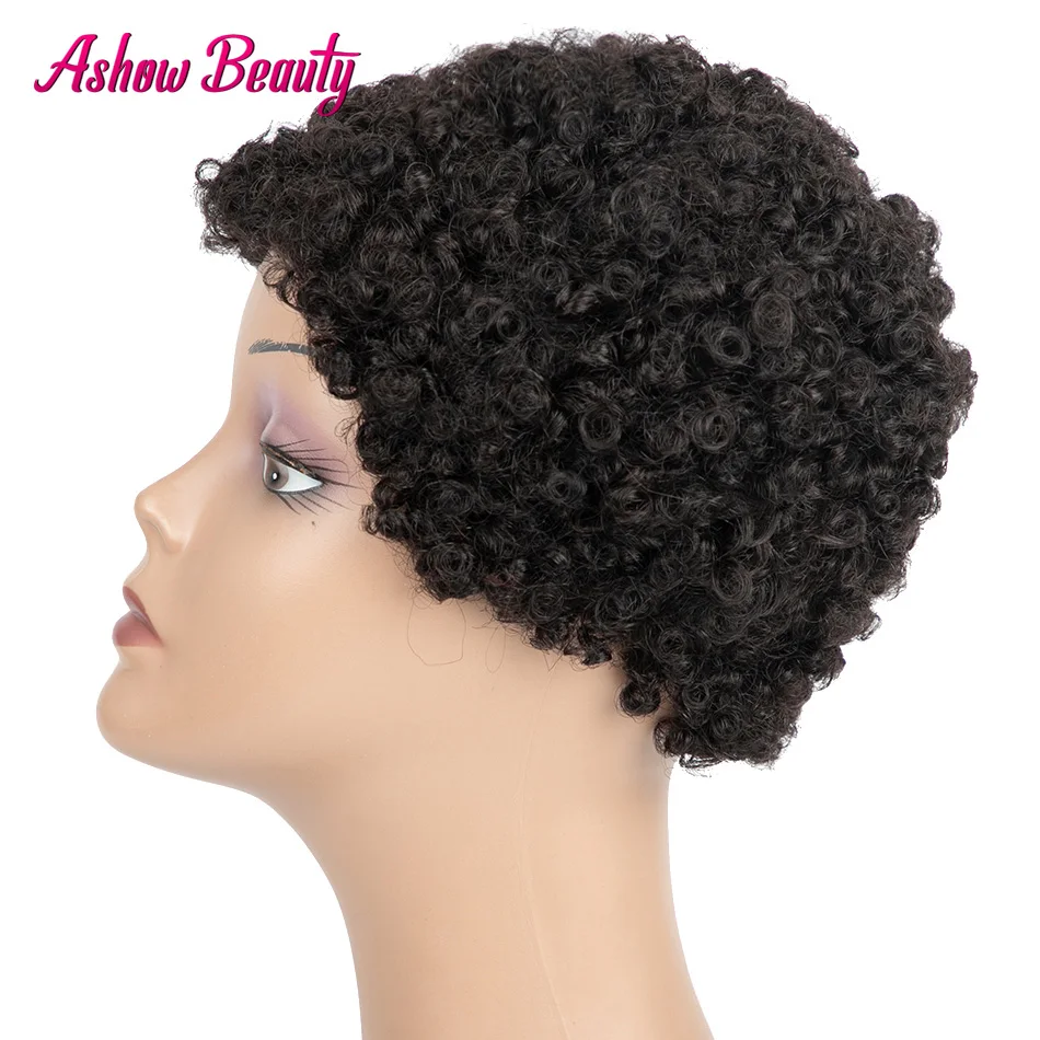 Полностью машинная Короткие афро вьющиеся человеческие волосы парики для женщин 150% плотность Remy бразильские человеческие волосы парик оптовая продажа