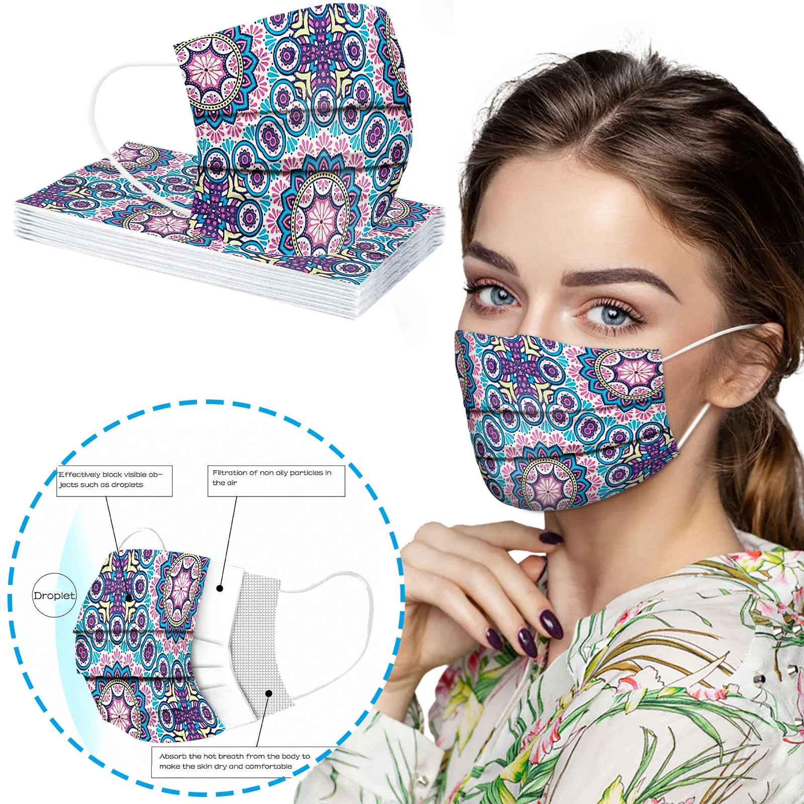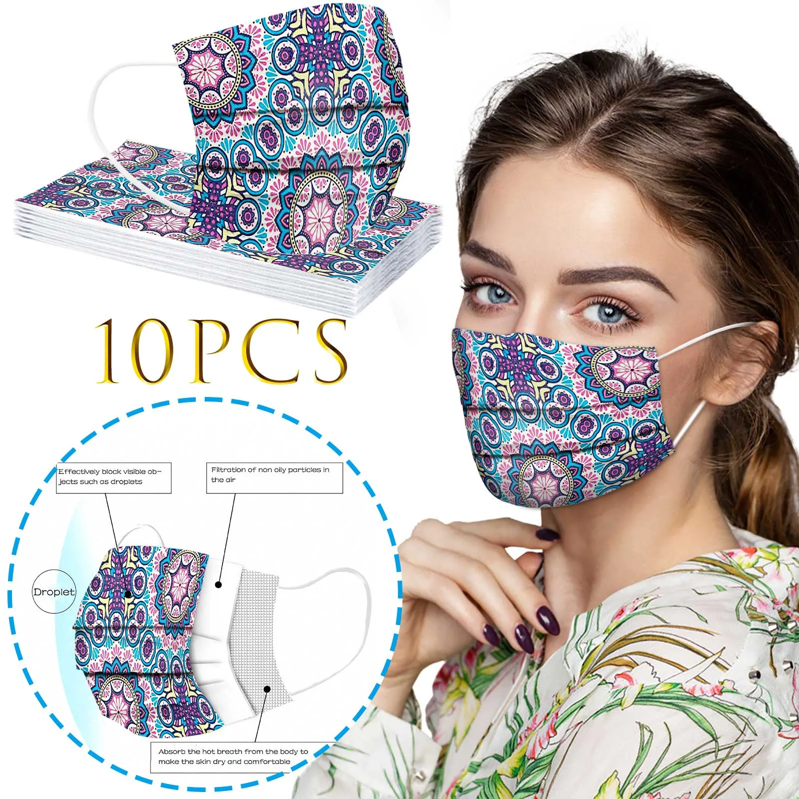 10 шт одноразовые этнические Фэн спанлейс ткань дышащая печать маска