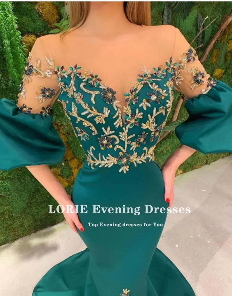 Вечерние платья LORIE Dubai с круглым вырезом и аппликацией, расшитое бисером, с рукавами до локтя, арабское платье для выпускного вечера, свадебное платье abiti da cerimonia