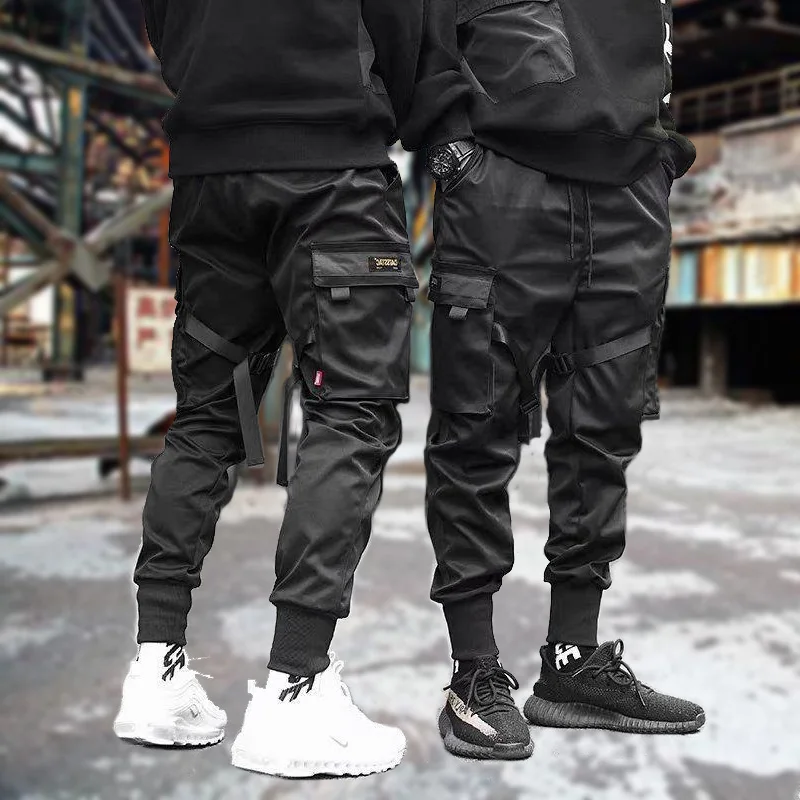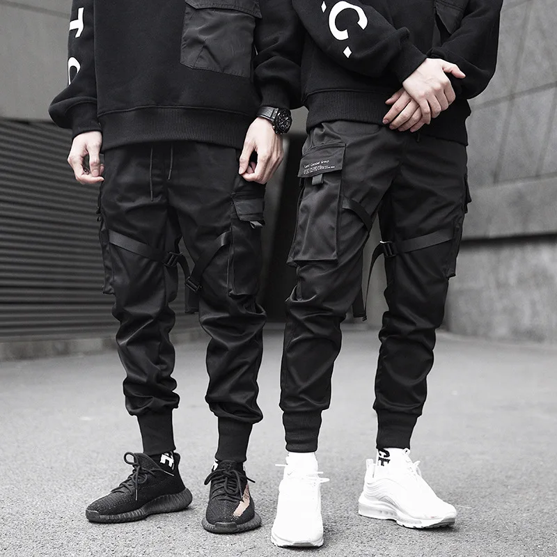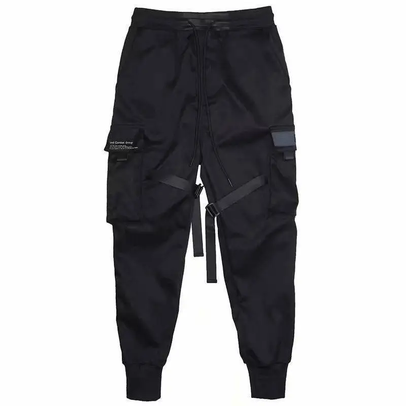 Брюки-султанки мужские с лентами и карманами, уличная одежда, повседневные спортивные штаны в стиле хип-хоп, джоггеры, черные флисовые брюки-карандаш в стиле Харадзюку, лето