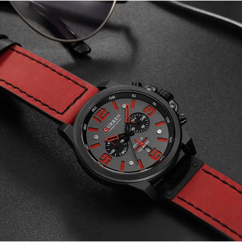 От CURREN, мужские повседневные кварцевые часы для мужчин модные красные кожаные спортивные мужские часы с хронографом, мужские часы Прямая доставка Reloj Hombre