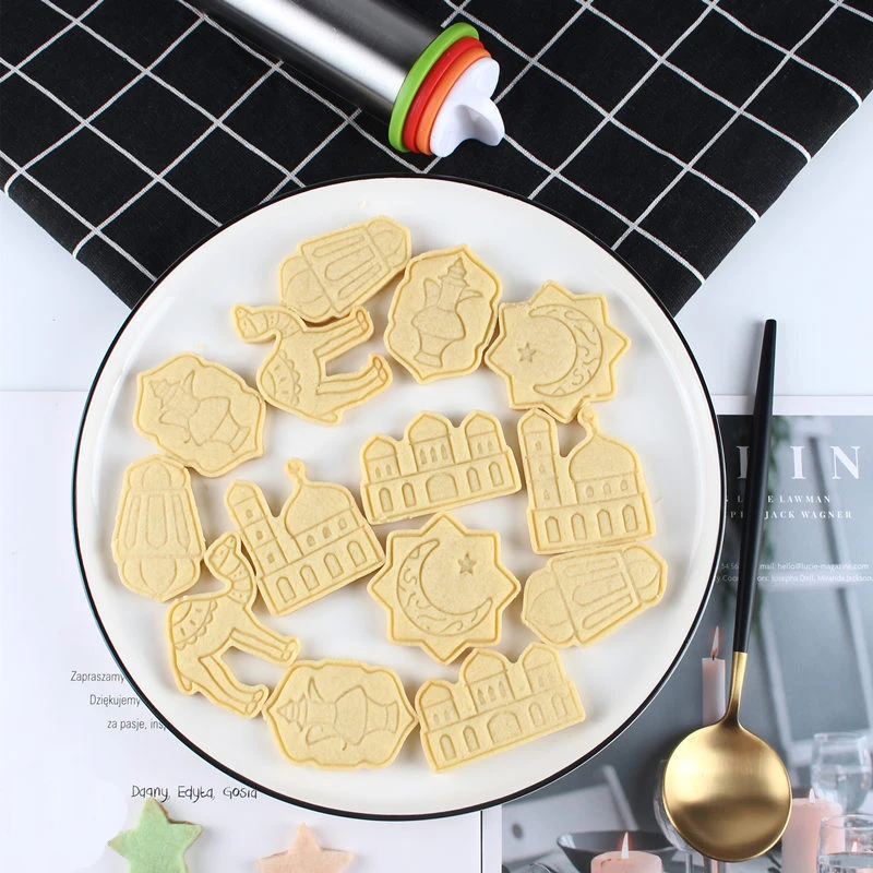 6 шт.компл. ИД Мубарак желтовато-коричневый Луна, Звезды форма для выпечки для печенья фрезы Рамадан украшения мусульман, форма для выпечки торта