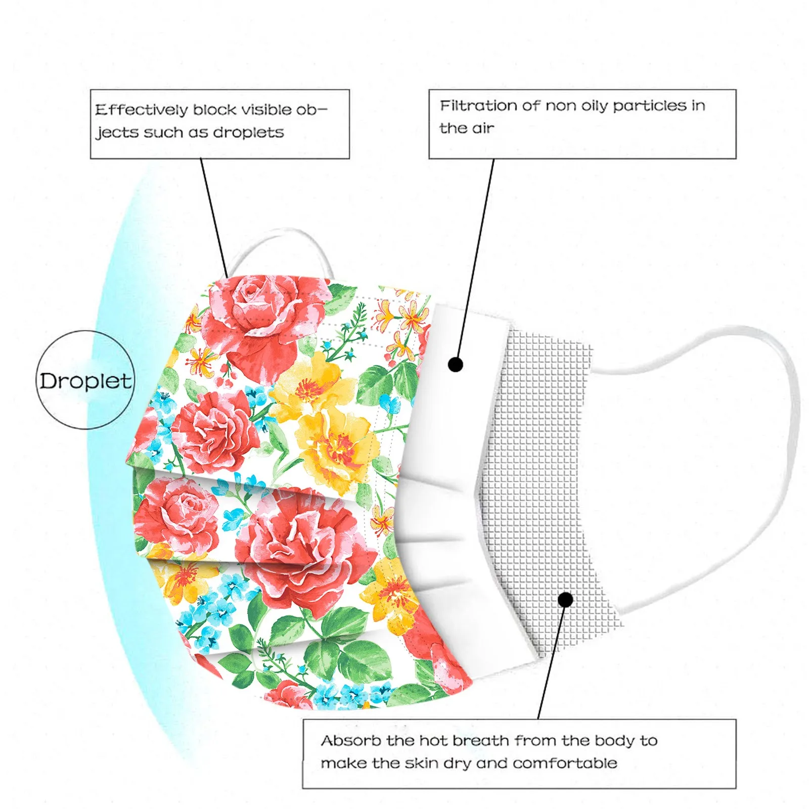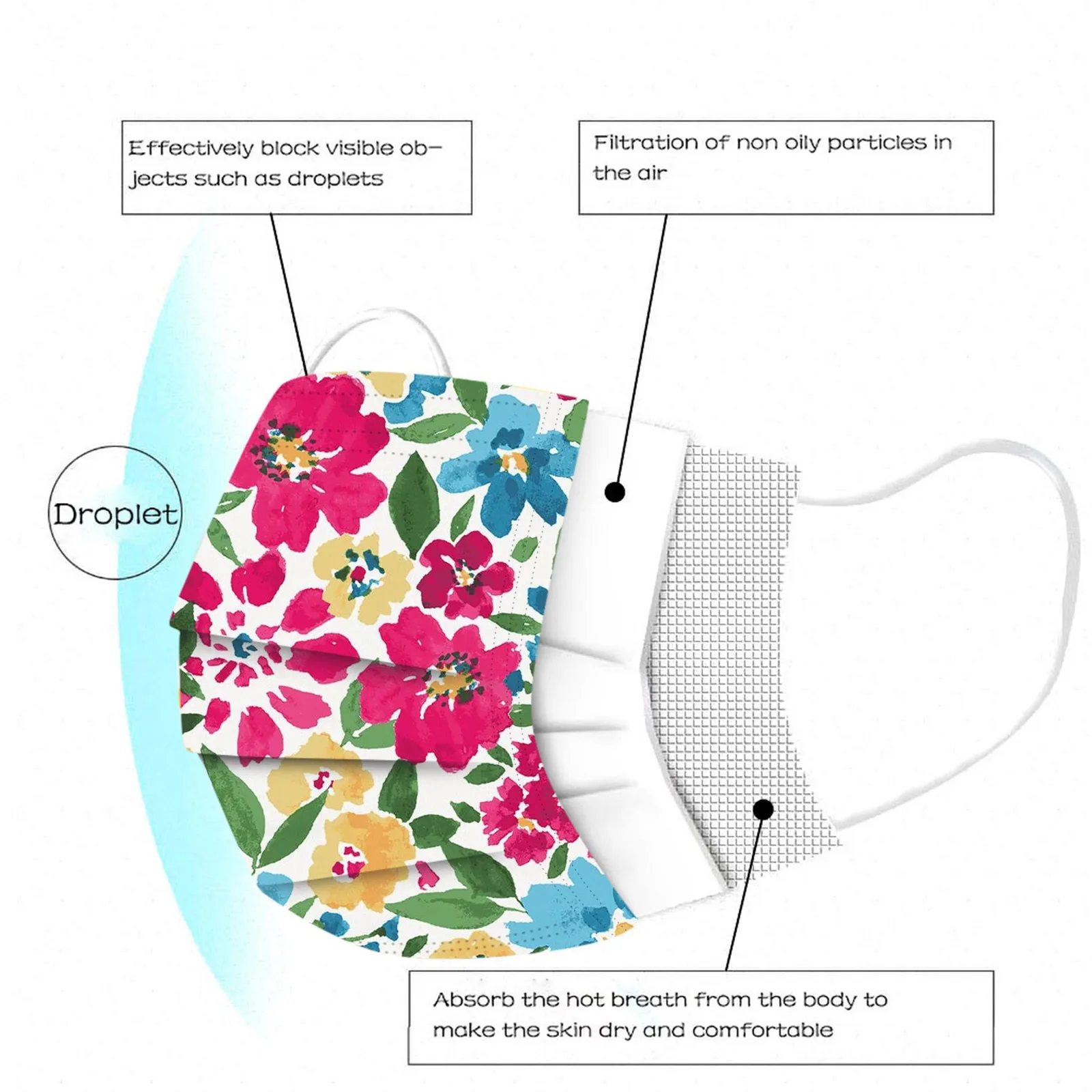 Идеальный дизайн, когда вы носите его, он легко ложится в лицо. Эластичная Ушная петля легко надевается и не давит на уши.