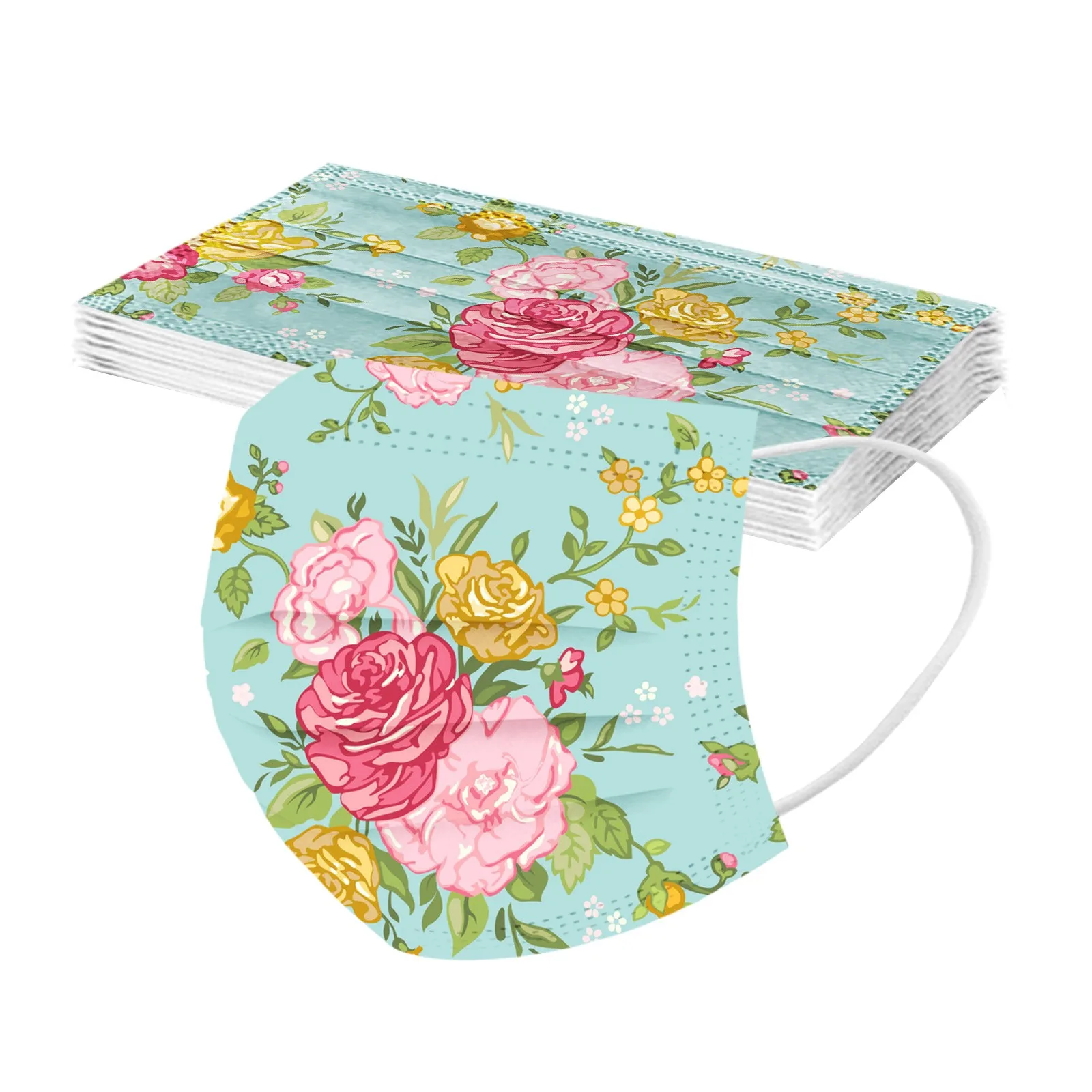 10 шт., одноразовые рождественские маски с цветочным принтом для взрослых