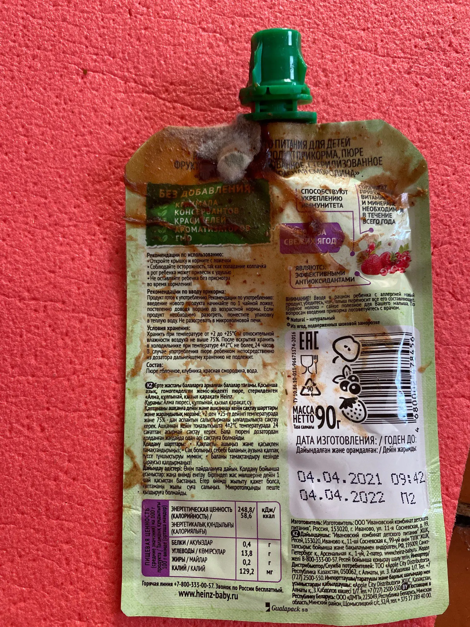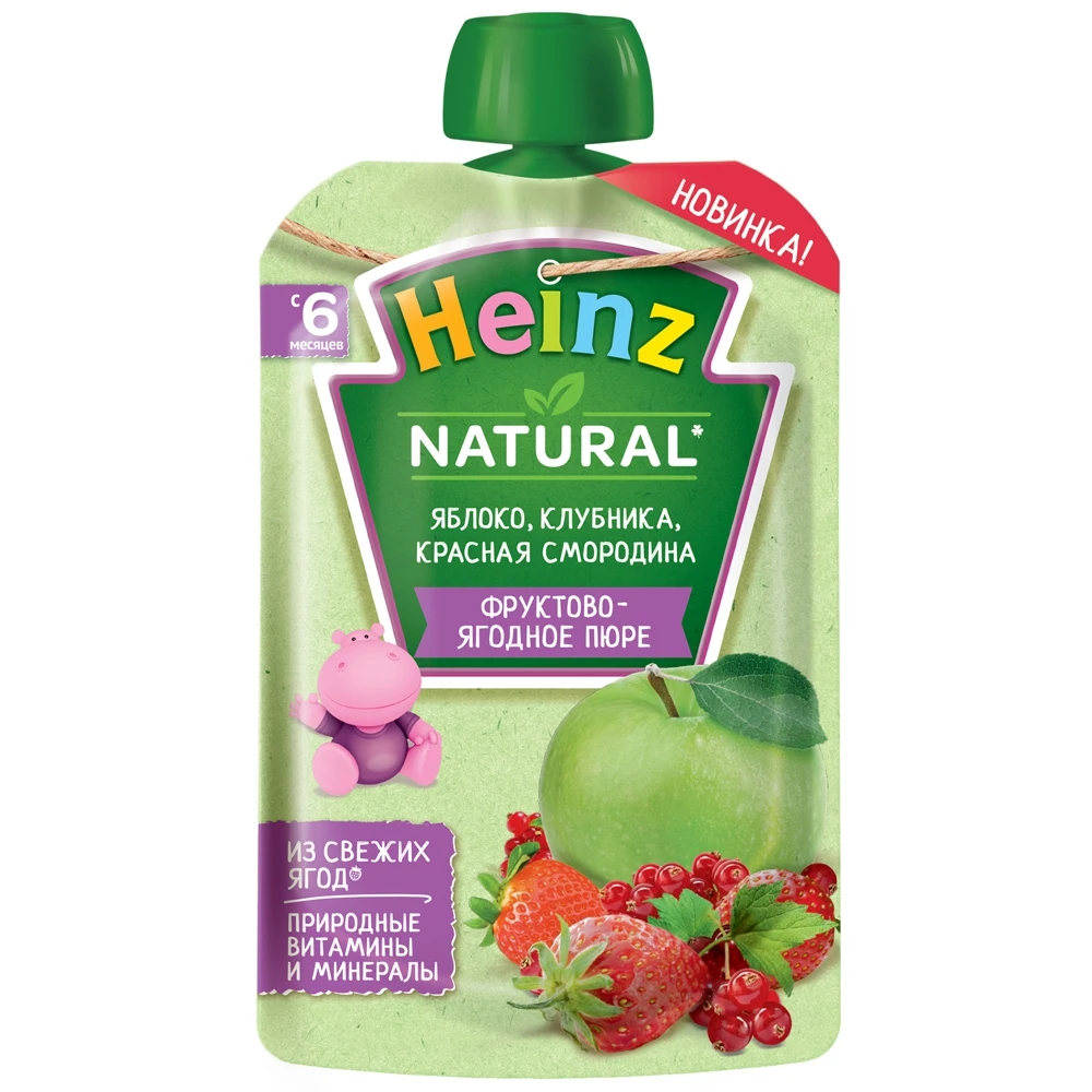 Пюре Хайнц яблоко, клубника, красная смородина , 6 мес 90 гр