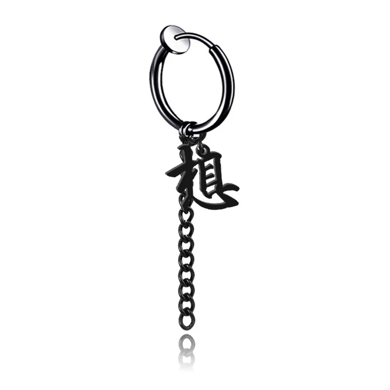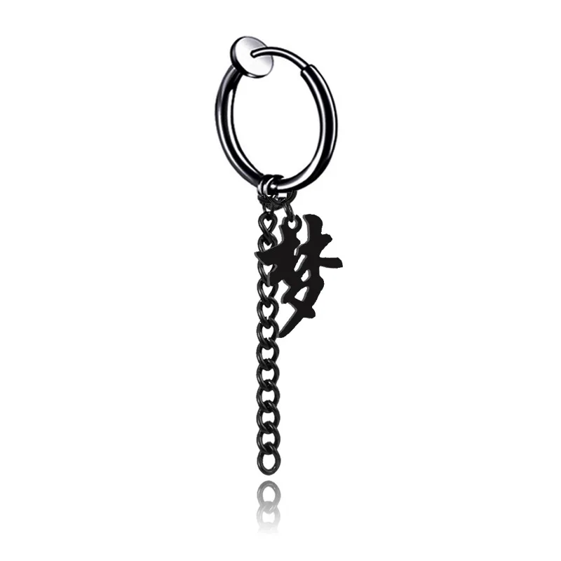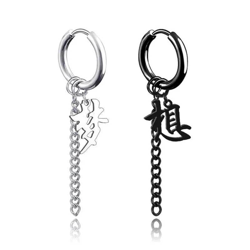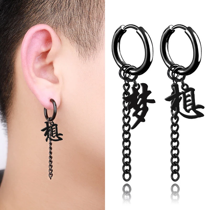 Мужские серьги-кольца SOHOT, из титана и нержавеющей стали, черного цвета, хип-хоп, в стиле панк, с кисточками, на цепочвечерние