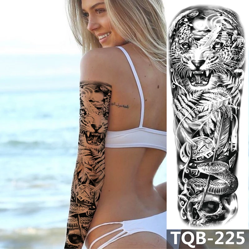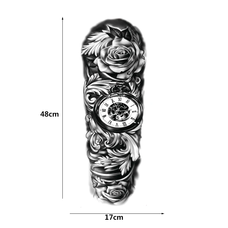 Временные татуировки на всю руку 1 лист, наклейки для временной Татуировка рукав, цветочные часы, Лев, временные татуировки для мужчин, женщин, взрослых