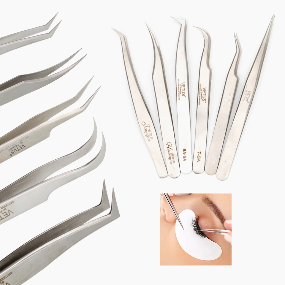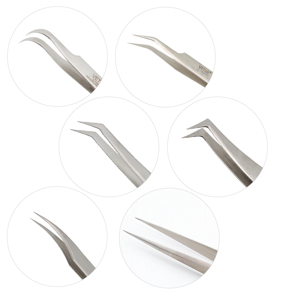 Профессиональный Антистатический пинцет для ресниц, индивидуальный Пинцет для наращивания ресниц, объемный веер, пинцет для ресниц VETUS, отличное закрытие