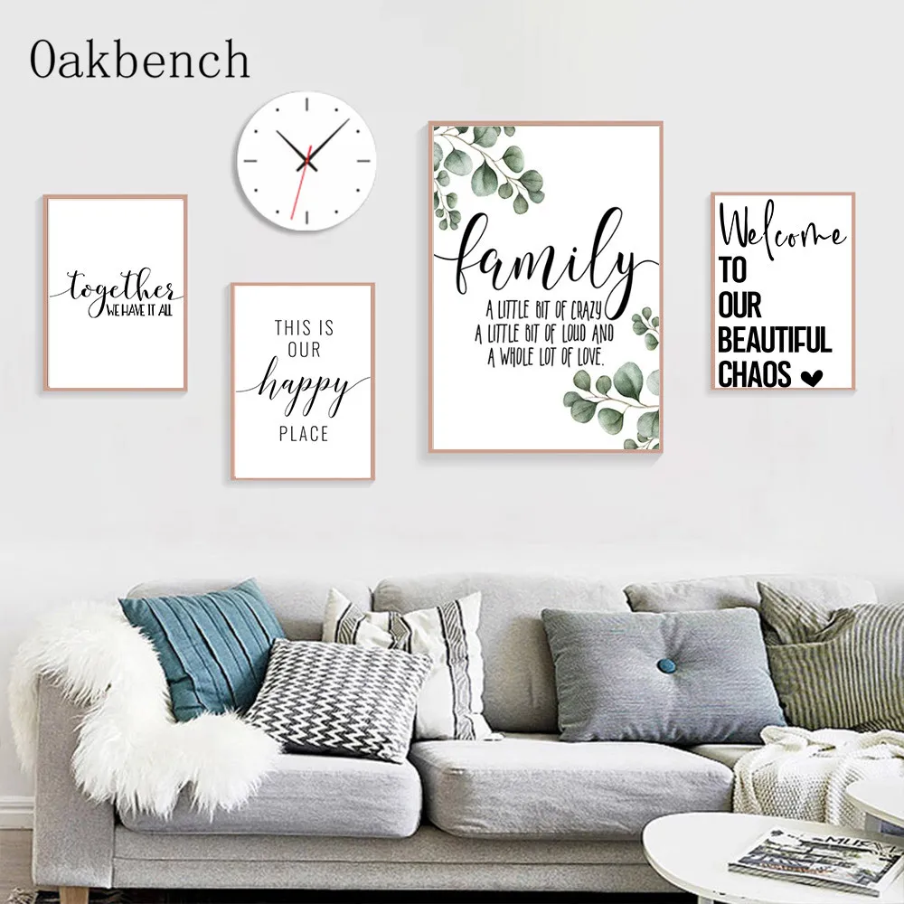Семейный Простой Настенный постер с цитатами, принт с зелеными лист...
