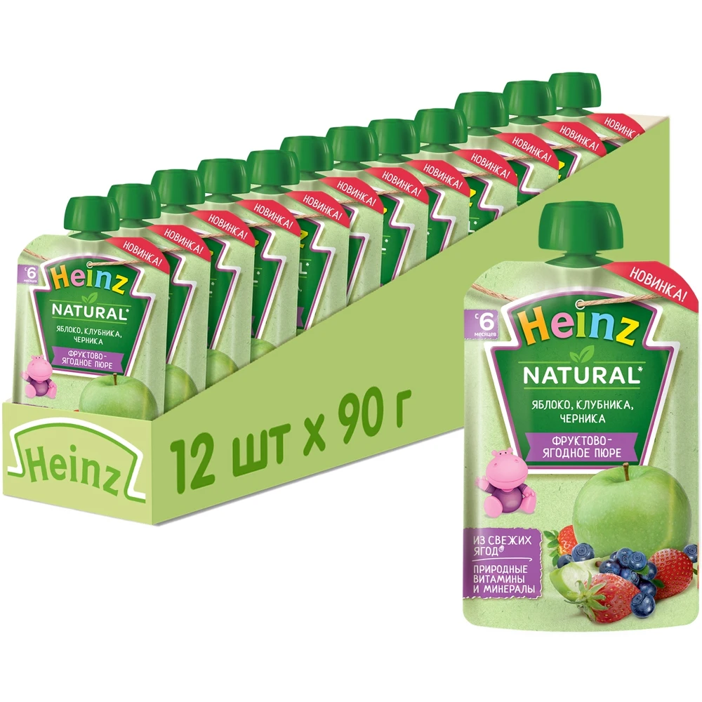 Пюре Хайнц яблоко, клубника, черника , 6 мес., 90 гр
