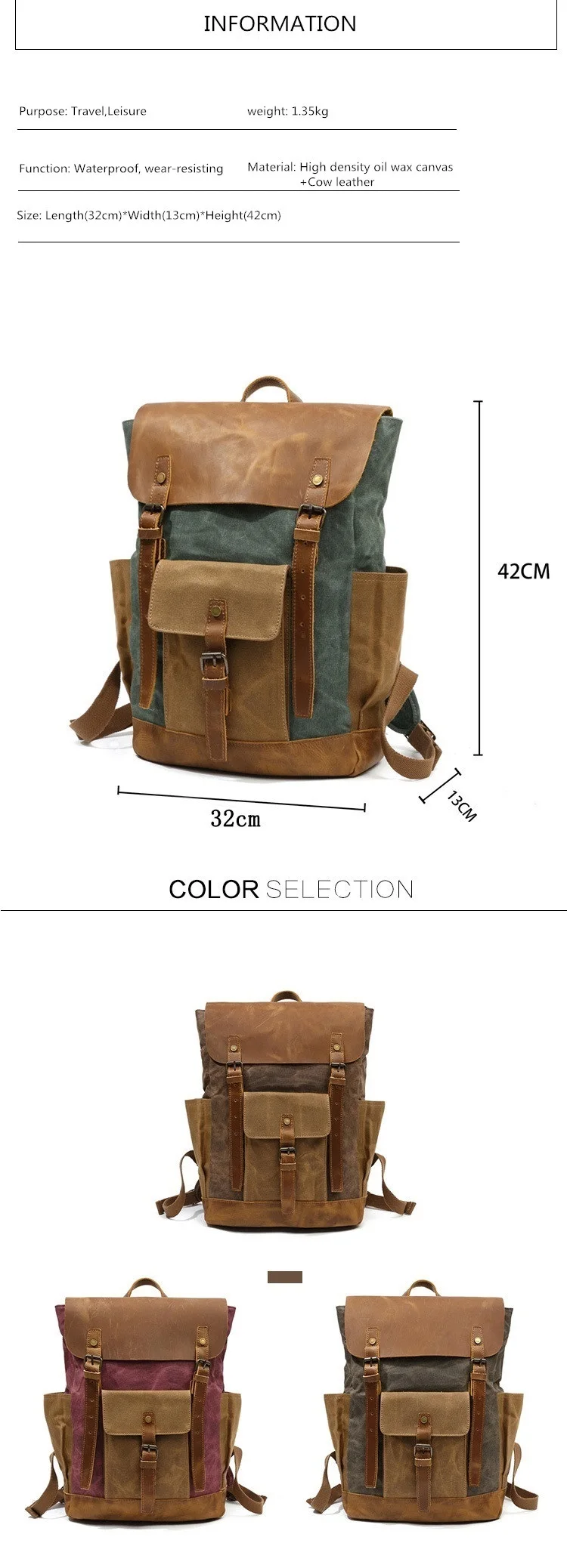 Рюкзаки MUCHUAN из вощеной коровьей кожи, унисекс, водонепроницаемы...