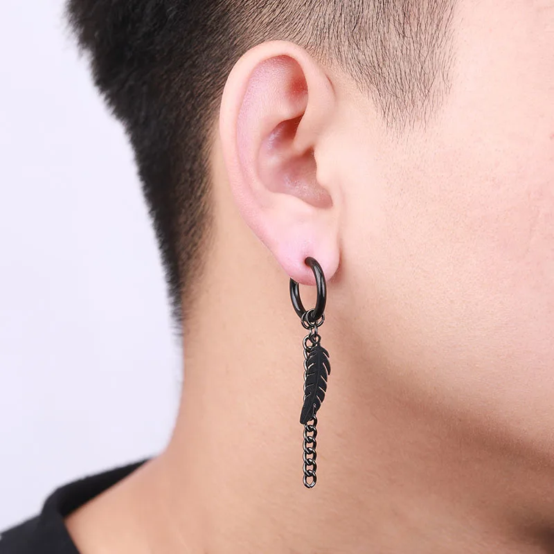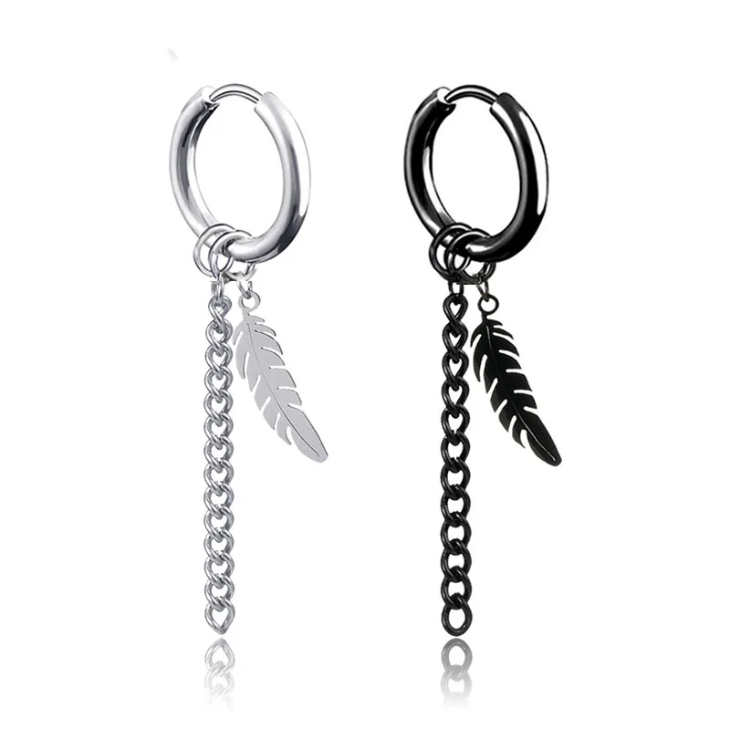 Так горячо в готическом стиле, для уличных мальчишек, унисекс, выполненное из нержавеющей стали, легированной титаном перо серьги в виде колец, рутая девочка Длинная кисточка, цепочка оптом танцевальное