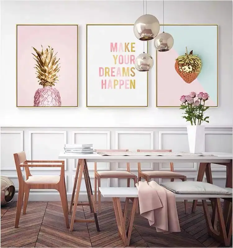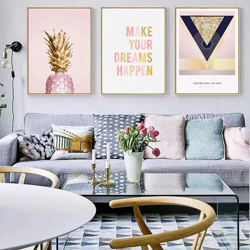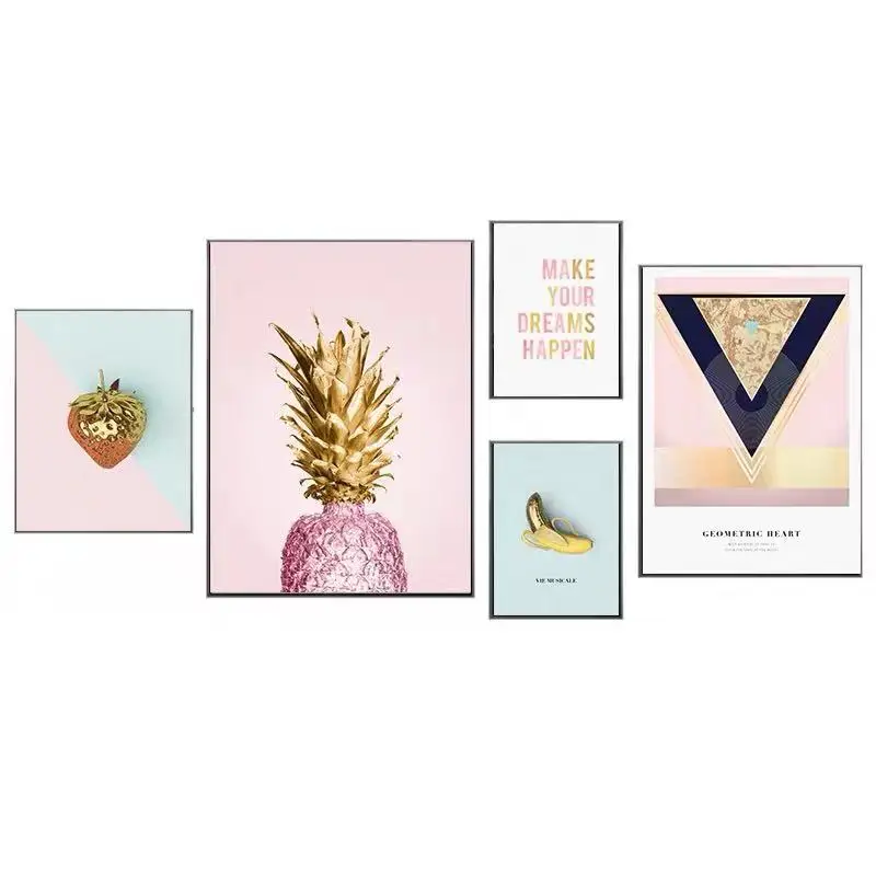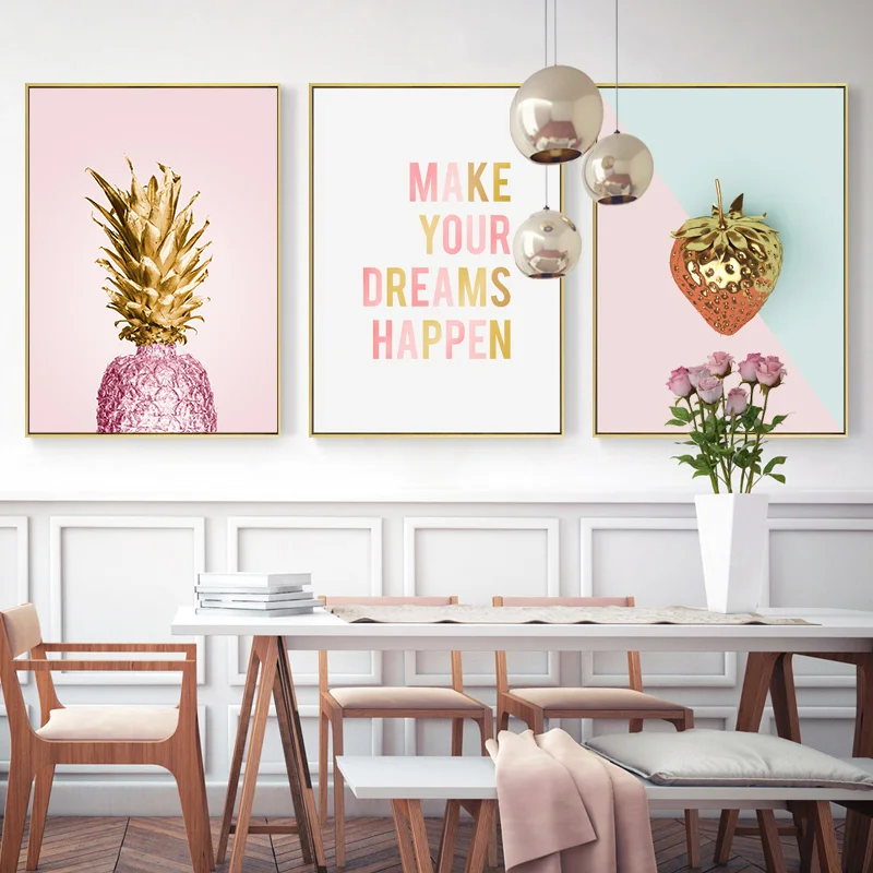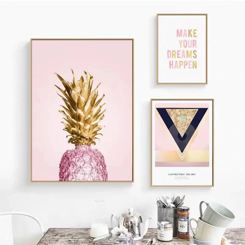 Современные минималистские свежие зеленые растения, золотой ананас, английские буквы, Зеленый лист, плакат декоративной живописи ядра