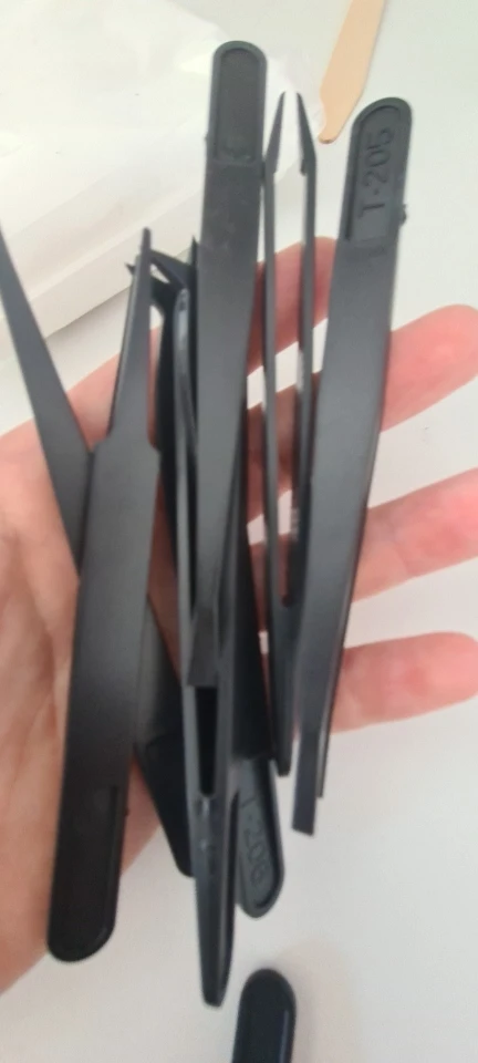 Как указано в описании, набор пластиковых пинцетов, идеально подходит для работы с смолой. Поскольку они из пластика, им нужно больше усилий для использования, но этого можно ожидать. Но нужно быть пластиком, чтобы хорошо работать с смоляной и легко чистить. Прибыл очень быстро. Рекомендуется. Очень рад. Спасибо.