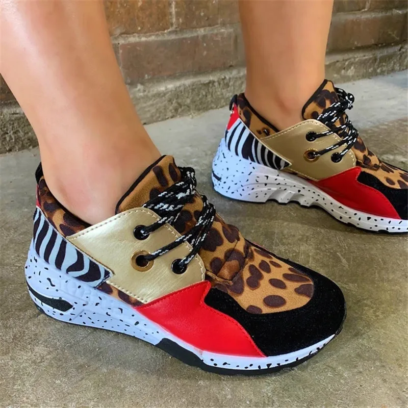 Весенние женские спортивные кроссовки Повседневная мягкая удобная женская обувь смешанные цвета, плоский леопардовые кеды на шнуровке размера плюс; Сезон осень