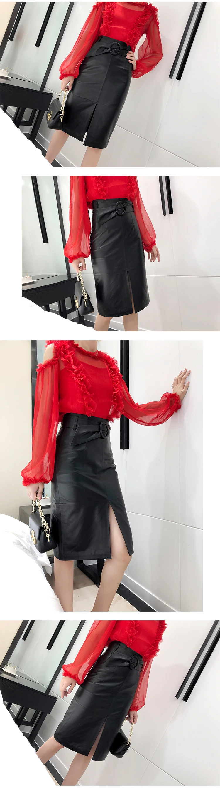 Женская длинная юбка-халат из натуральной кожи, розовая Привлекательная юбка с поясом-кольцом, высокой талией и разрезом спереди, 65 см, для зимы