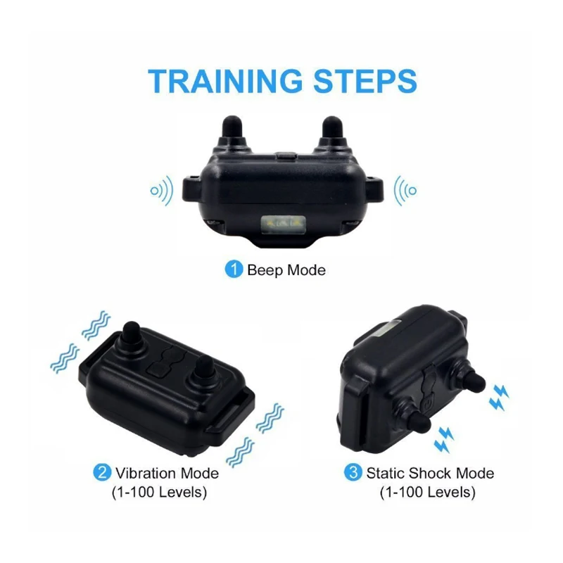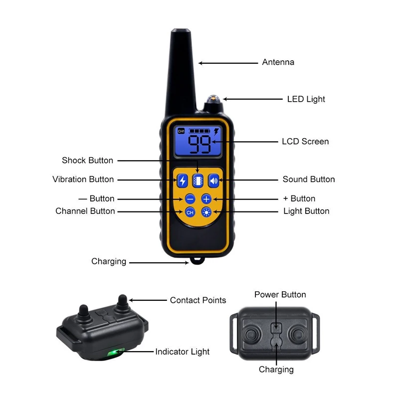 -Полностью водонепроницаемая конструкция: приемник обладает супер водонепроницаемостью, поэтому ваш питомец может плавать или гулять под дождем с ним-Регулируемые Уровни: уровни вибрации и ударов регулируются от 1 до 99, и вам рекомендуется постепенно попробовать уровни, чтобы найти подходящий при первом использовании этой системы для тренировки питомцев-3 режима тренировки: шок/вибрация/звук-С синей подсветкой экрана: можно использовать ночью-Дистанционное управление на больших расстояниях: пультРасстояние 800 м (без помех)-3 канала: на удаленном передатчике есть 3 сигнальных канала, им можно управлять 3 приемниками одной модели-Автоматическое сохранение питания: автоматический режим ожидания и функции памяти-Регулируемый размер ошейника: Максимальная Регулируемая длина до 67 см, подходит для собак любого размера
