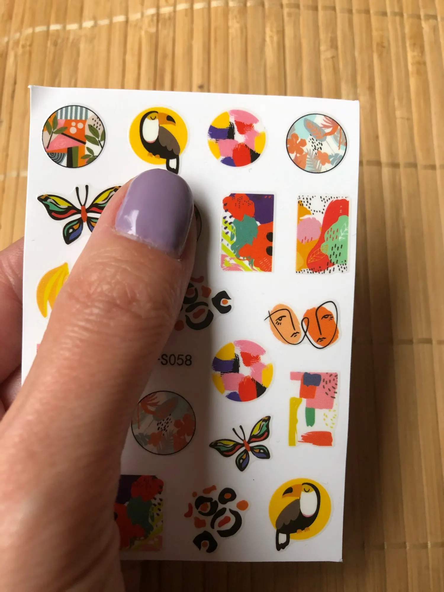 Они огромные! На фото продавца их можно по две на ноготь, а по факту только одну и то на большой палец! Это наклейки с клейкой поверхностью, не водные, уложить такие огромные на ноготь будет очень неудобно! Я разочарована, потому что очень понравились рисунки, за что поставлю 2 звезды.