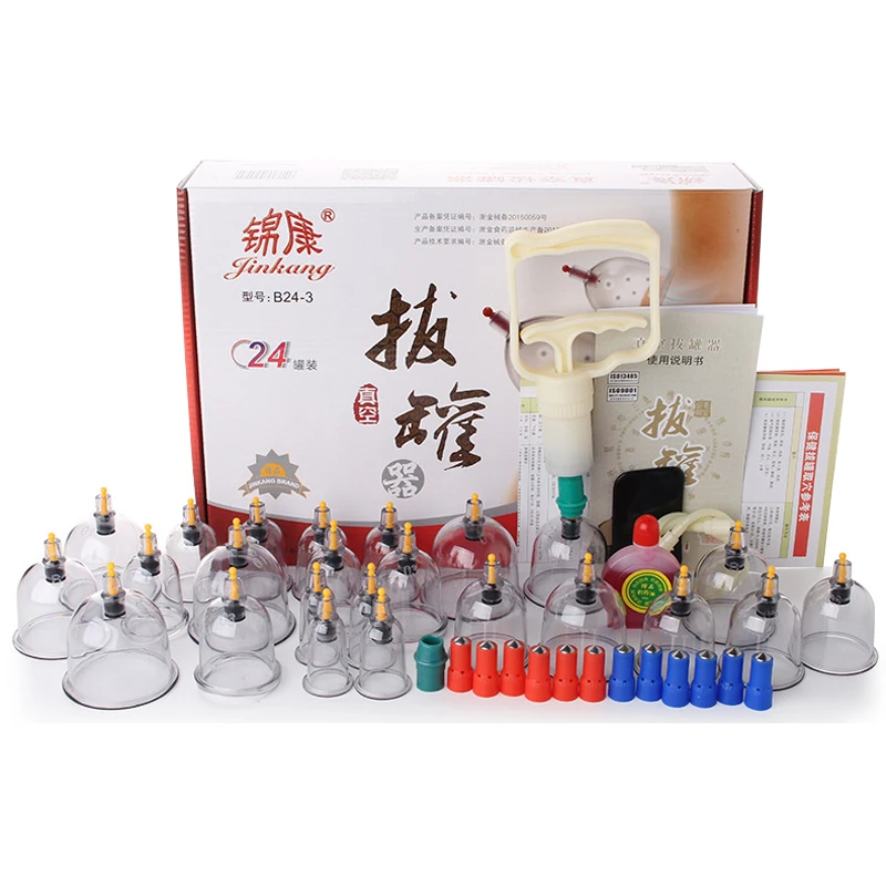 24 шт., китайские вакуумные чашки, набор, выдвижной вакуумный аппарат, расслабляющие массажеры для тела, магнитная терапия, всасывающий насос, массажная чашка