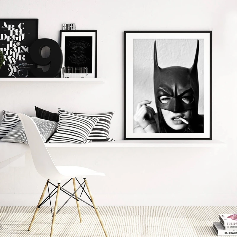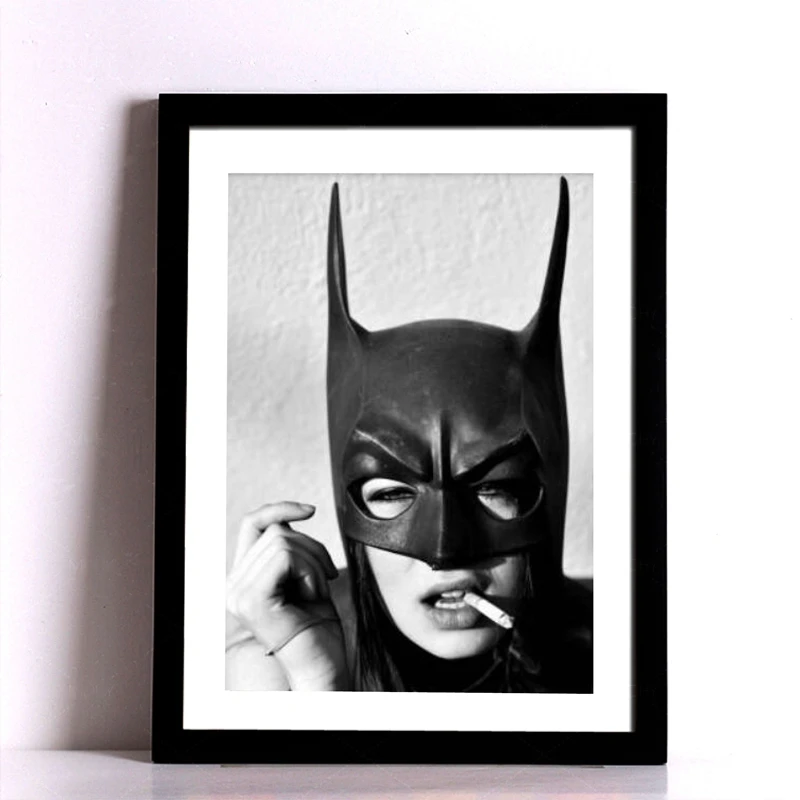 Картина на холсте с изображением женщины летучей мыши и курения, черно-белая, с изображением девушки-супергероя